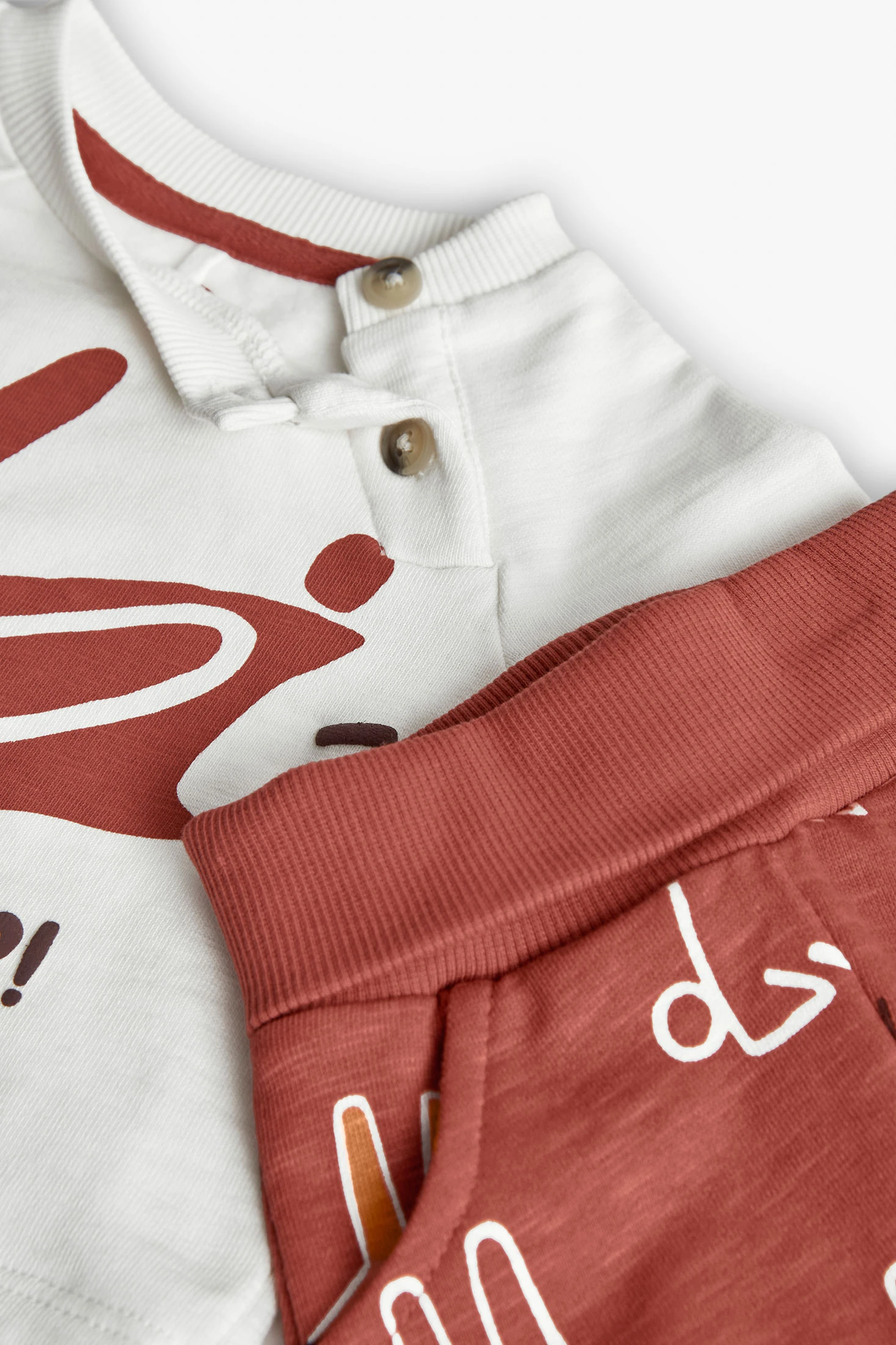 Weißes Strickset mit Tiermuster, ideal für die Garderobe Ihres Kindes. Das Sweatshirt präsentiert ein fröhliches Design mit entzückenden Tierfiguren, während die Hosen das Outfit perfekt mit einem abgestimmten Stil ergänzen. Aus weichem Strickstoff gefertigt, garantiert es maximalen Komfort für die empfindliche Kinderhaut. Erhältlich in den Größen von 1 Monat bis 2 Jahre, ist dieses Set perfekt für die Übergangszeiten. Eine praktische und stilvolle Option für den Alltag der Kleinsten.