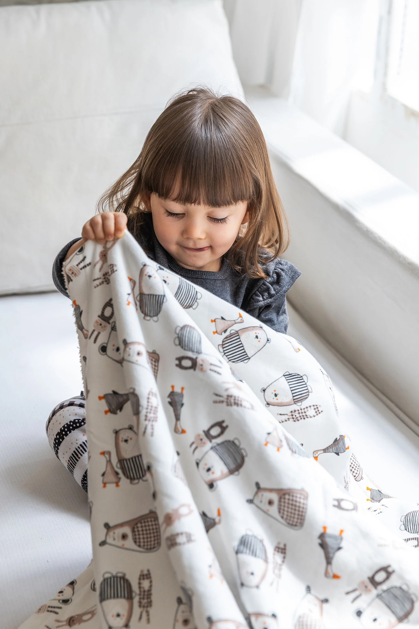 Gestrickte Babydecke mit Tiermuster, ideal, um Ihr Kleines warm und gemütlich zu halten. Hergestellt aus einem weichen und kuscheligen Stoff, bietet sie ein bezauberndes Design mit verschiedenen Tieren, das einen spielerischen und ansprechenden Touch hinzufügt. Perfekt ab der Geburt zu verwenden, ist sie ideal für die kühleren Jahreszeiten und lässt sich dank ihrer neutralen Grundfarbe leicht mit anderem Babyzubehör kombinieren. Vielseitig genug, um sie im Bettchen, Kinderwagen oder während der Ruhezeit zu Hause zu verwenden. Ein unverzichtbares Stück für Eltern, die Qualität und Stil bei Produkten für ihre Babys suchen.