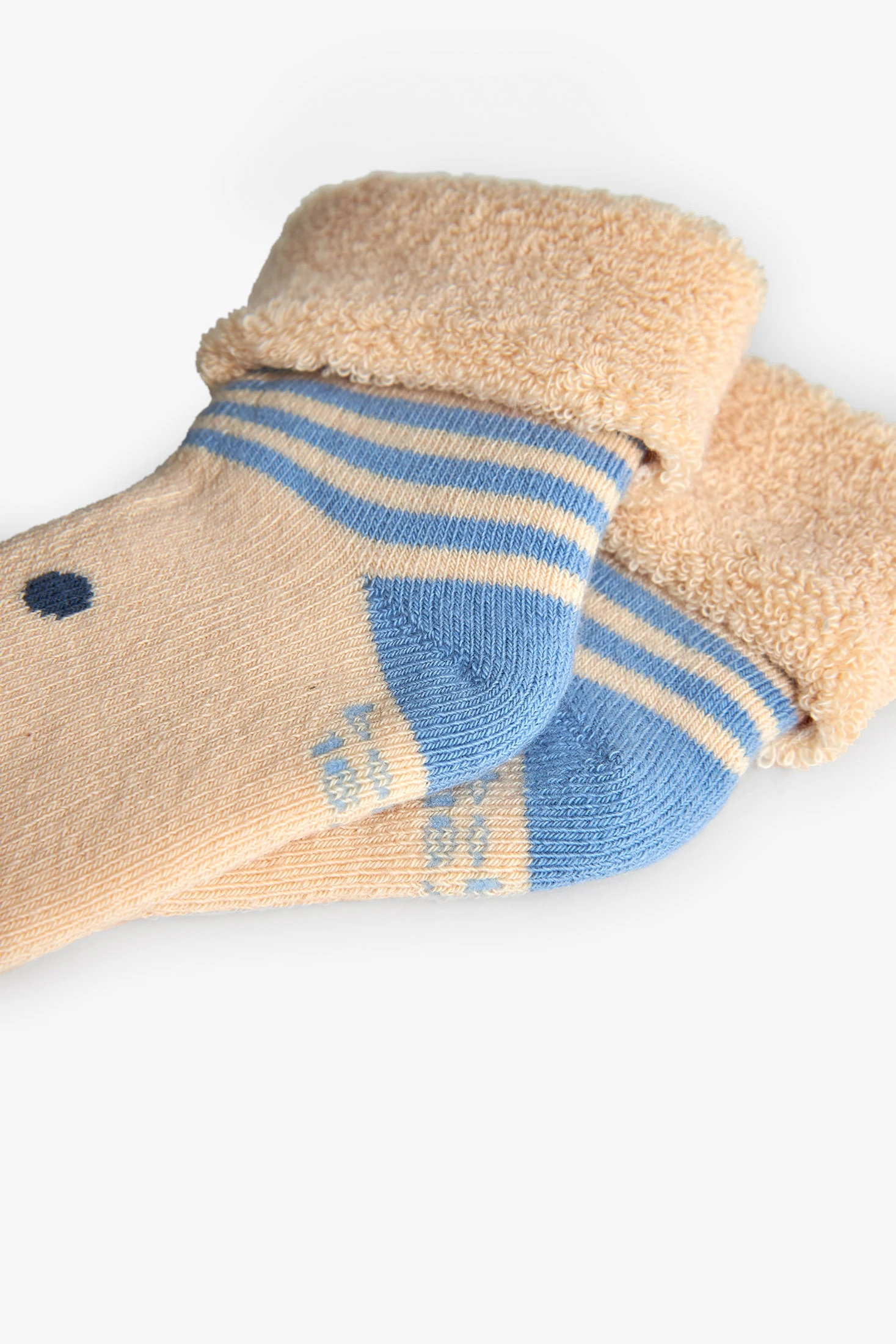 Pack aus blauen Baby-Socken mit bezaubernden Tiermotiven in Beige- und Blautönen, die der Garderobe deines Kleinen eine lustige Note verleihen. Hergestellt aus weicher Baumwolle, um Komfort und Wärme zu gewährleisten, sind sie geeignet für Babys von der Geburt bis 12 Monate. Elastische Bündchen bieten einen perfekten und sicheren Sitz und verhindern unerwünschtes Verrutschen. Mit Größen von 16/18 bis 22/24 sind sie ideal, um die Füße deines Babys in den kalten Monaten warm zu halten. Eine praktische und niedliche Wahl, um jedes Kinderoutfit zu vervollständigen.