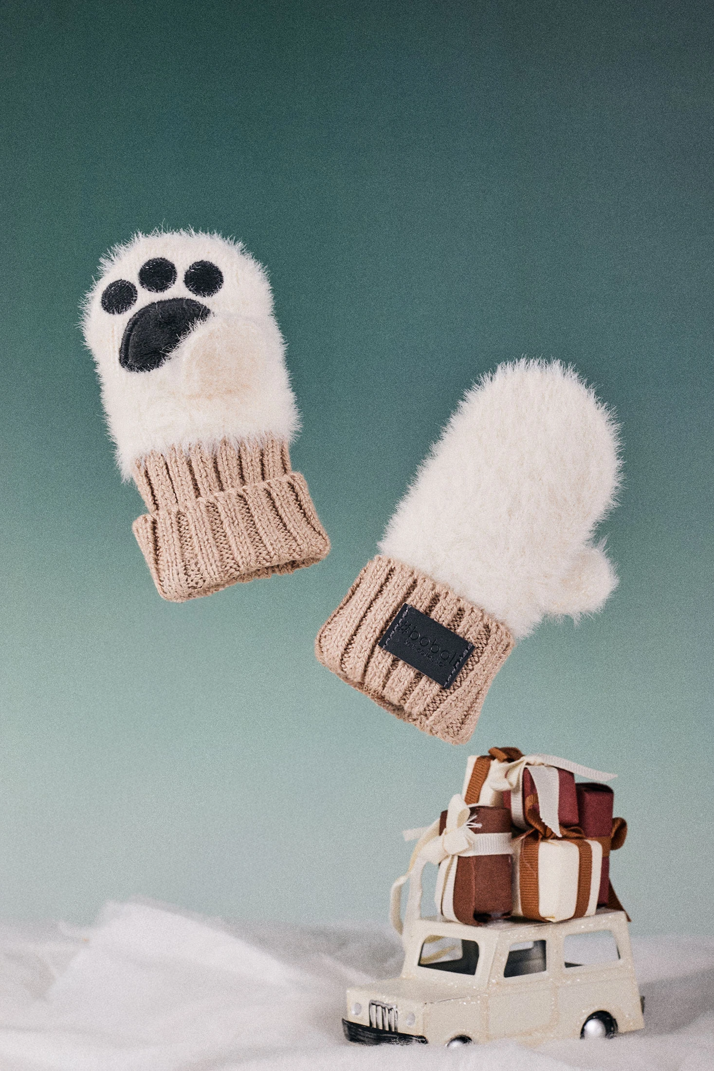 Handschuhe für Babys in Weiß und Beige, entworfen, um die Hände Ihres Kleinen in den kälteren Jahreszeiten warm und bequem zu halten. Aus einem weichen und sanften Material gefertigt, sind sie ideal für die empfindliche Haut von Babys. Das Design mit Tierdetails verleiht einen charmanten und spielerischen Touch. Erhältlich in Größen für Babys von 1 bis 24 Monaten lassen sich diese Fäustlinge leicht mit jedem Winteroutfit kombinieren und sind eine praktische und gemütliche Wahl, um die Garderobe Ihres Babys zu vervollständigen.