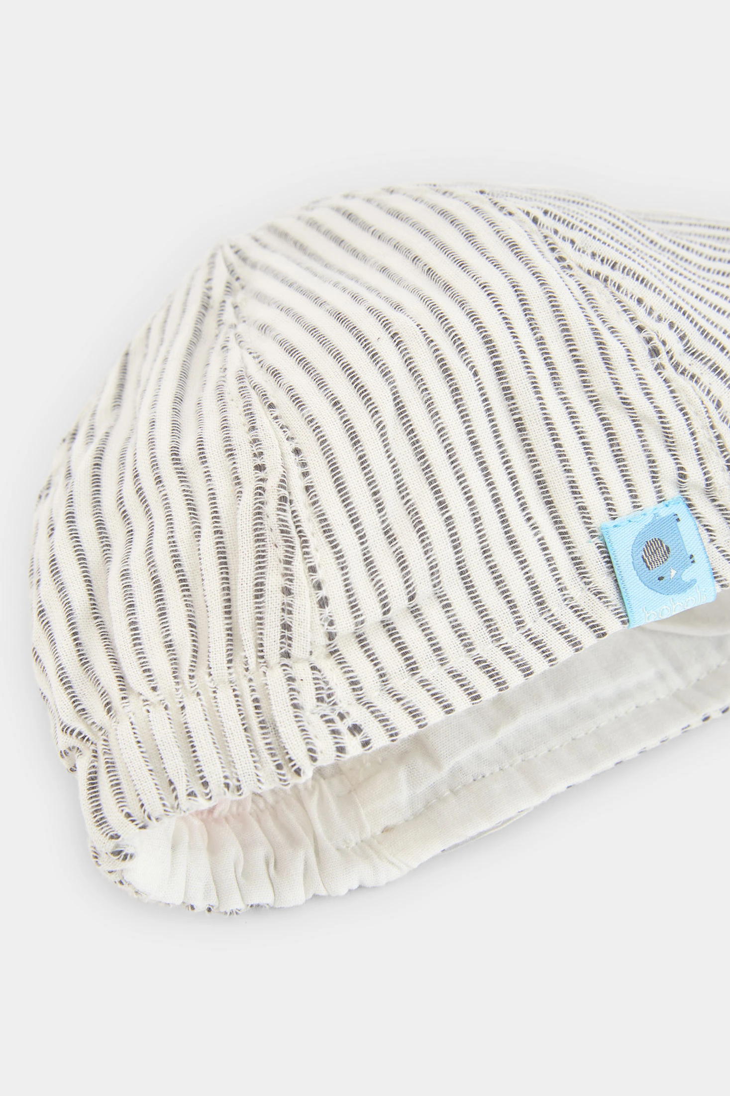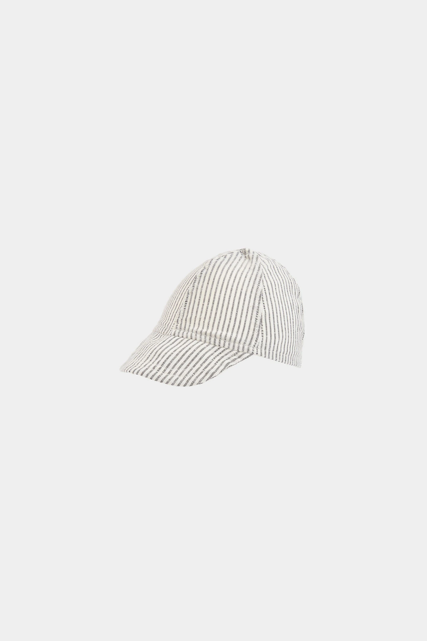 Gestreifte Popelingroßkappe, ideal um die Kleinsten vor der Sonne zu schützen. Hergestellt aus einem weichen und frischen Stoff, ist sie perfekt für Babys von 0 bis 24 Monaten. Ihr schwarz-weiß gestreiftes Design verleiht ihr einen klassischen und eleganten Touch und lässt sich leicht mit verschiedenen Kleidungsstilen kombinieren. Erhältlich in den Größen XXS/42, XS/45, S/48, M/50, passt sie sich dem Wachstum Ihres Babys an. Diese Kappe bietet Komfort und Stil und ist eine praktische Wahl für jeden Ausflug im Freien.