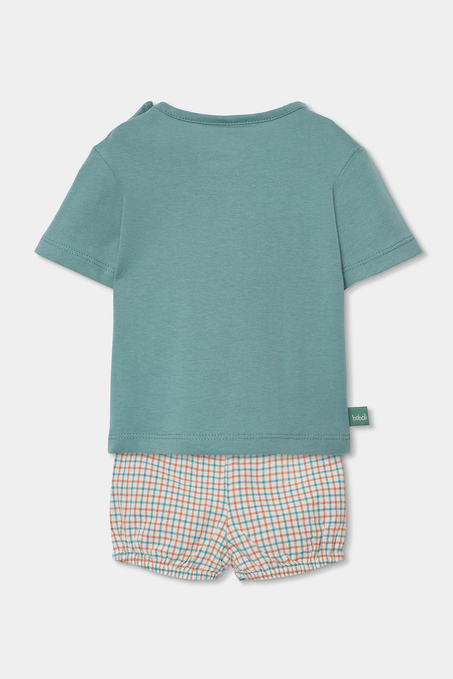 Baby-Set mit T-Shirt und kurzer Hose aus grünem Baumwolle.