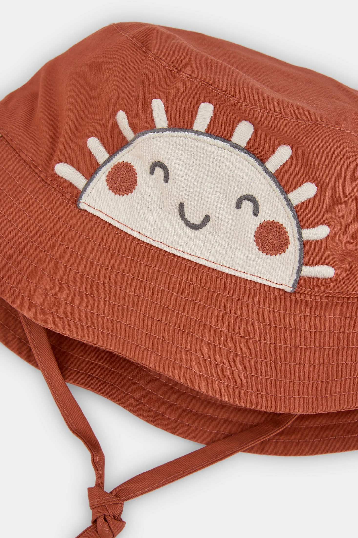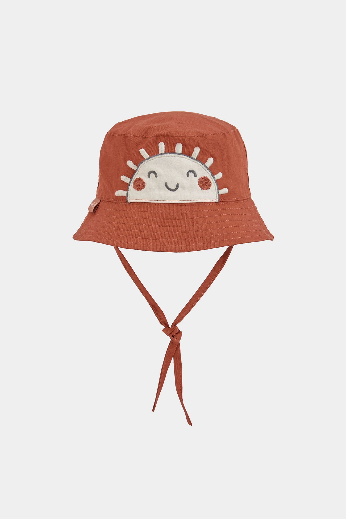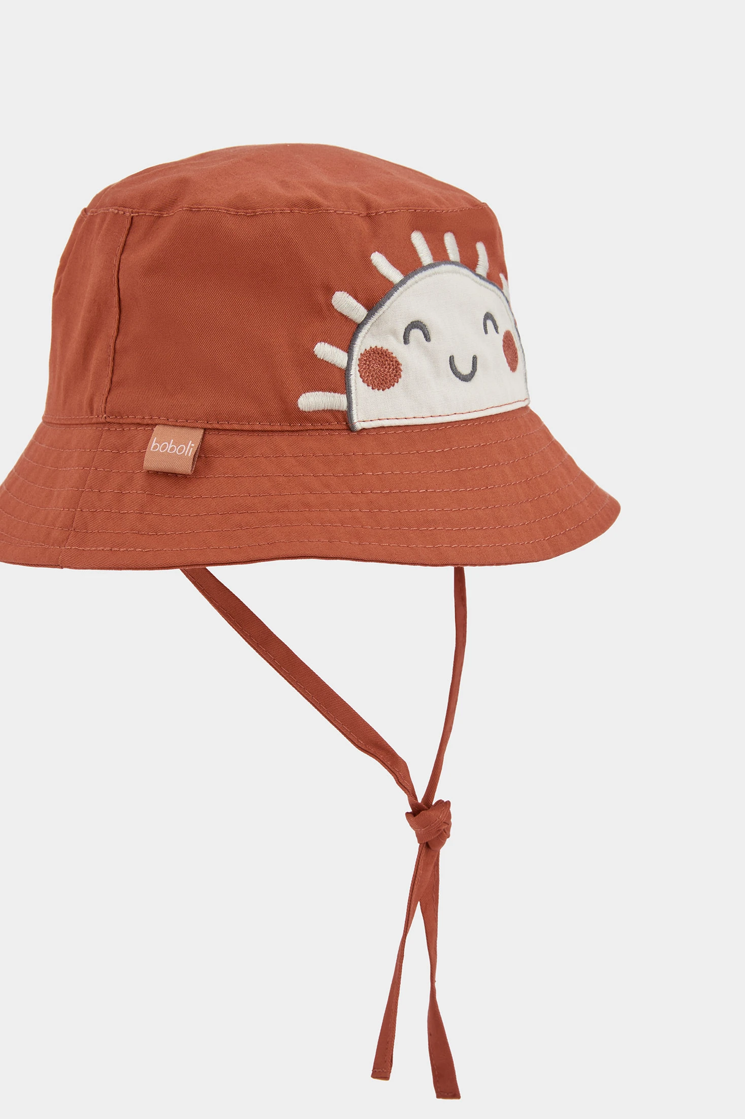 Babymütze ideal für die Kleinsten, mit einem braunen Design und einem niedlichen lächelnden Sonnenmotiv. Hergestellt aus einem weichen Material, bietet sie Komfort und Wärme. Geeignet für Kinder im Alter von 0 bis 12 Monaten, erhältlich in den Größen XXS42, XS/45, S/48, M/50. Verfügt über verstellbare Riemen, die einen sicheren Sitz gewährleisten. Ihr lustiges Design und die neutrale Terrakottafarbe erleichtern die Kombination mit verschiedenen Outfits und verleihen der Babygarderobe einen Hauch von Niedlichkeit und Stil.
