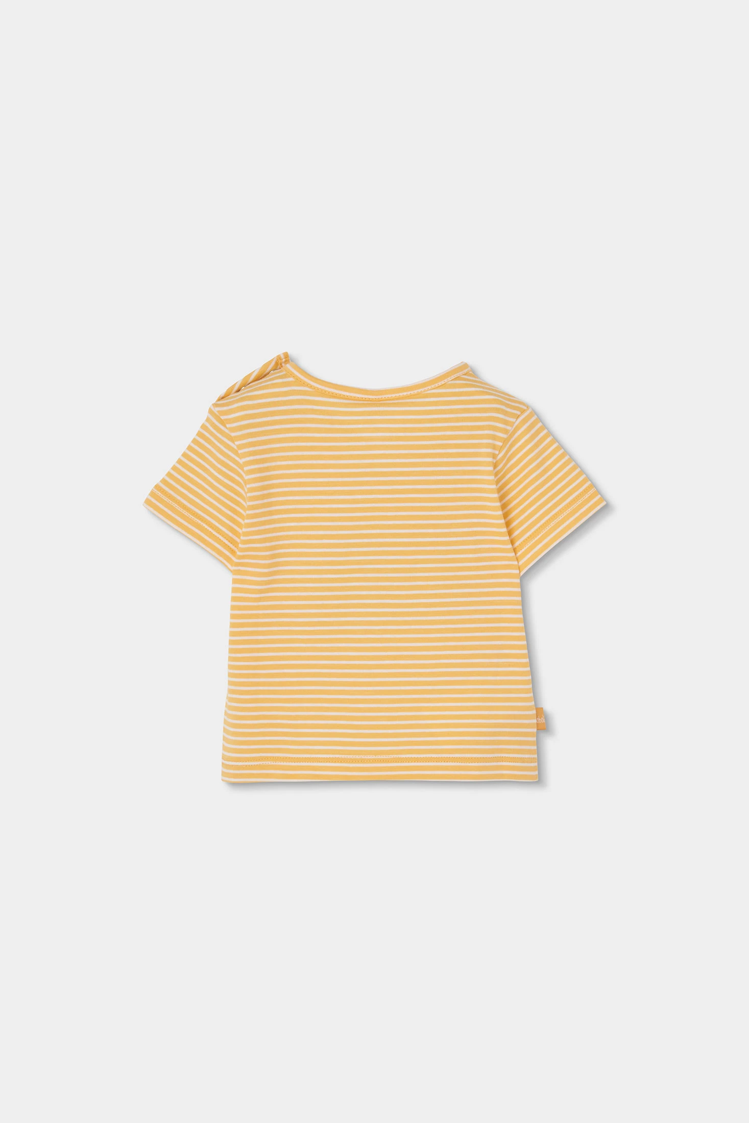 Ideales Sommer-Set für Baby-Jungen für die wärmeren Monate. Gelbes Baumwoll-T-Shirt mit weißen Streifen und einer Zeichnung eines freundlichen blauen Krebses, das einen Hauch von Spaß hinzufügt. Kombiniert mit einer hellblauen Bermuda-Shorts ist es perfekt für einen sommerlichen Look. Das weiche Material sorgt für Komfort für das Baby. Erhältlich in Größen von 1 bis 24 Monaten ist es eine vielseitige Option, die mit einfachen Accessoires für einen frischen Stil ergänzt werden kann.