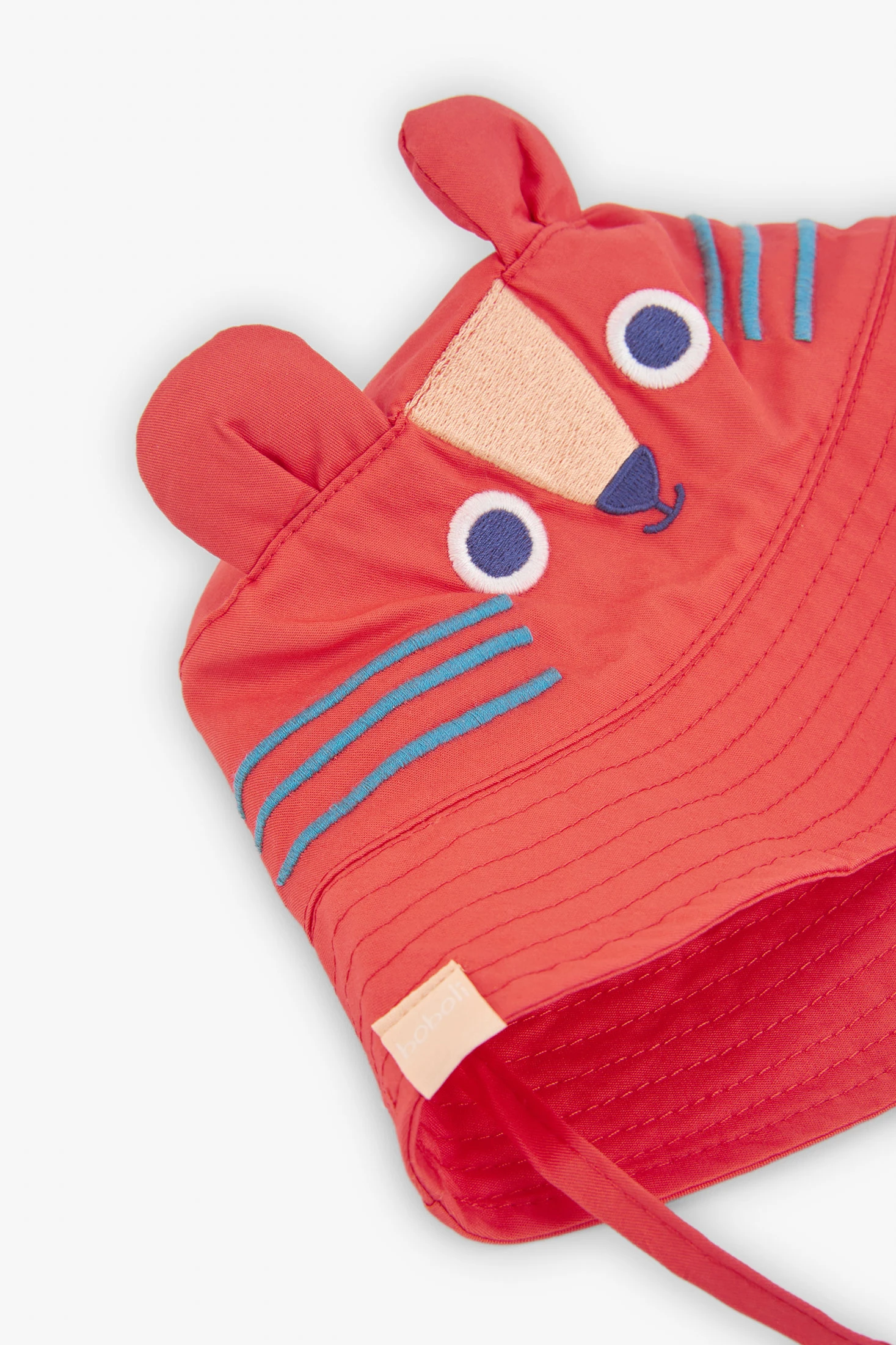 Hergestellt aus weicher Baumwolle, ist dieser Babymütze ideal, um die Kleinsten vor der Sonne zu schützen. Das leuchtende Orange, kombiniert mit einem lustigen Tierdesign, macht ihn auffällig und niedlich. Perfekt für Altersgruppen von Neugeborenen bis zu 12 Monaten, mit Größen: XXS/42, XS/45, S/48, M/50. Die verstellbare Schleife sorgt für eine gute Passform und bietet Komfort und Stabilität. Ein perfektes Accessoire, um es mit Sommeroutfits zu kombinieren und gleichermaßen Sonnenschutz und Stil zu bieten.