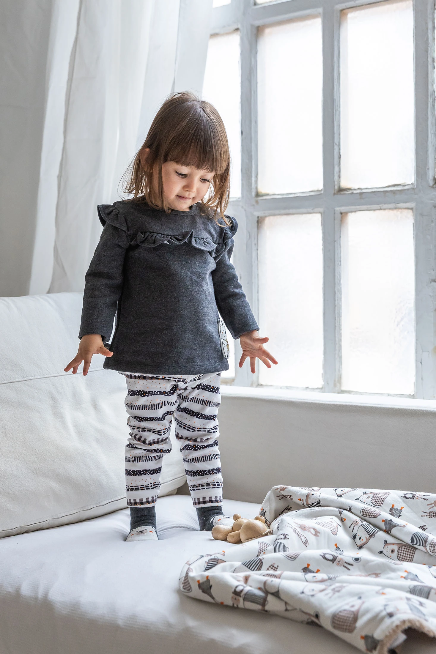 Strickset für Babys in Dunkelgrau, entworfen, um Wärme und Weichheit während der Herbst- und Wintersaison zu bieten. Es beinhaltet einen entzückenden Strickpullover mit Tiermotiven, der jedem Anlass einen liebenswerten Touch verleiht. Die passenden Hosen bieten optimalen Komfort und vervollständigen einen gemütlichen und stilvollen Look. Erhältlich in den Größen von 1 Monat bis 2 Jahre, passt es sich leicht dem Wachstum des Babys an und bietet eine praktische und vielseitige Option für die Kinderbekleidung. Kombinieren Sie es mit weichen Schuhen und einer leichten Jacke für ein vollständiges und bequemes Outfit.