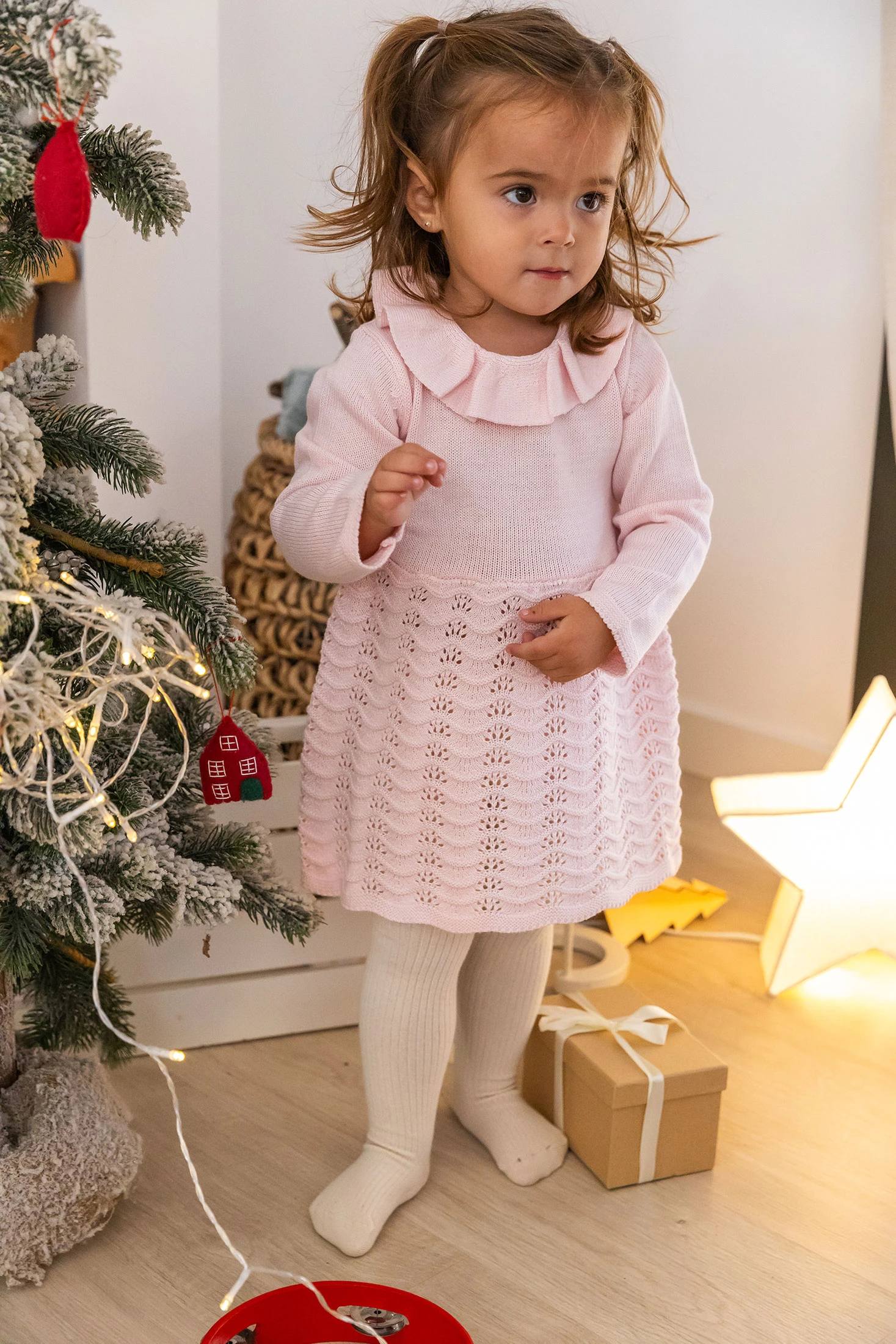 Strickkleid in Rosa, perfekt für dein Baby-Mädchen, bietet zwei Stiloptionen in einem Kleidungsstück. Hergestellt aus einem weichen Strickstoff, ist es ideal, um dein Kleines während der Herbst-Winter-Saison bequem und warm zu halten. Erhältlich in Größen von 1 Monat bis 2 Jahre, passt es sich perfekt dem Wachstum deiner Tochter an. Es lässt sich bezaubernd mit Strumpfhosen oder Leggings für einen gemütlichen und modischen Look kombinieren. Es ist eine unverzichtbare Wahl für jede Kinderkleidung und vereint Stil und Funktionalität bei jedem Gebrauch.