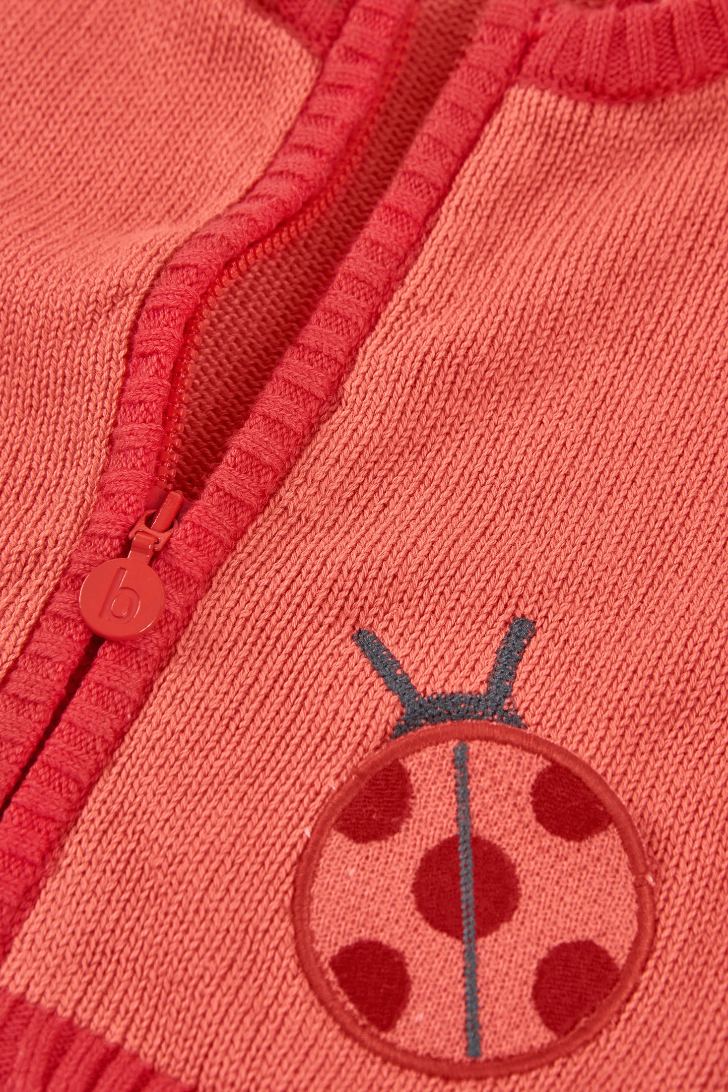 Strickjacke für Baby Mädchen, ideal, um die Kleinsten warm zu halten. Erhältlich in Größen von 1 Monat bis 24 Monate. Das Design in Rot präsentiert eine weiche und bequeme Oberfläche, mit einer durch Knöpfe abnehmbaren Kapuze und Rippstrick an Bündchen, Saum und kontrastierendem Reißverschluss. Mit Taschen in Marienkäferform, die dem Look einen spielerischen Touch verleihen. Perfekt zum Kombinieren mit Hosen oder Kleidern, ist dieses Kleidungsstück vielseitig und praktisch für den Alltag.