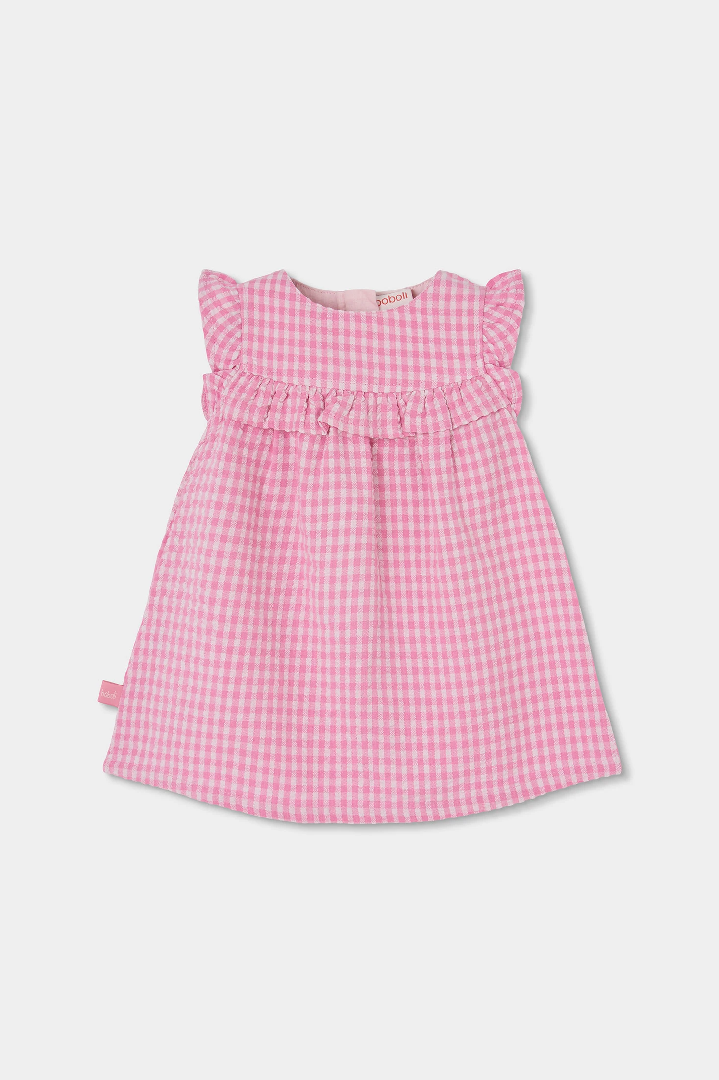 Kleid aus kariertem Popeline für Neugeborene, perfekt für jeden besonderen Anlass. Der Popeline-Stoff verleiht ihm einen klassischen und eleganten Touch, während das Vichy-Muster in Rosatönen eine süße Note hinzufügt. Das Design umfasst zarte Rüschen an den Schultern und ein Passe. Funktional und bequem für Babys von 1 bis 24 Monaten. Ideal zu kombinieren mit weichen Jacken an kühleren Tagen, bietet dieses Kleid Stil und Komfort und wird zu einer idealen Wahl für die Garderobe deiner Kleinen.