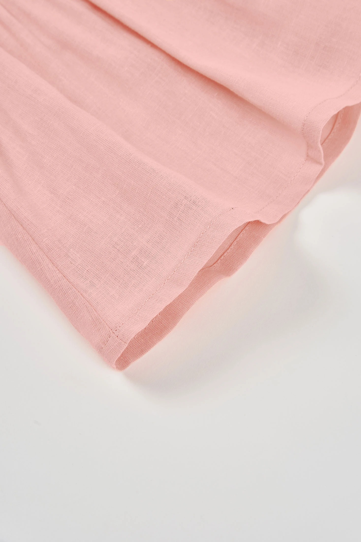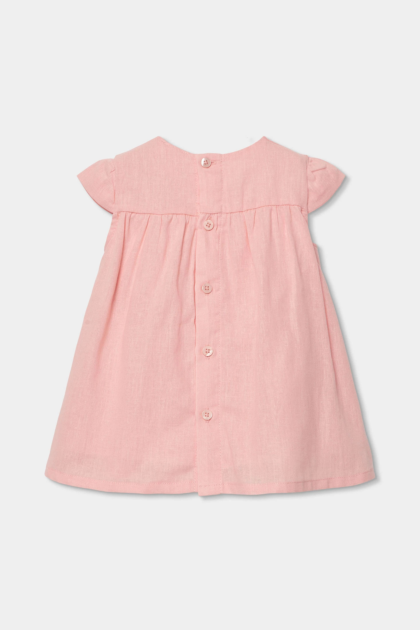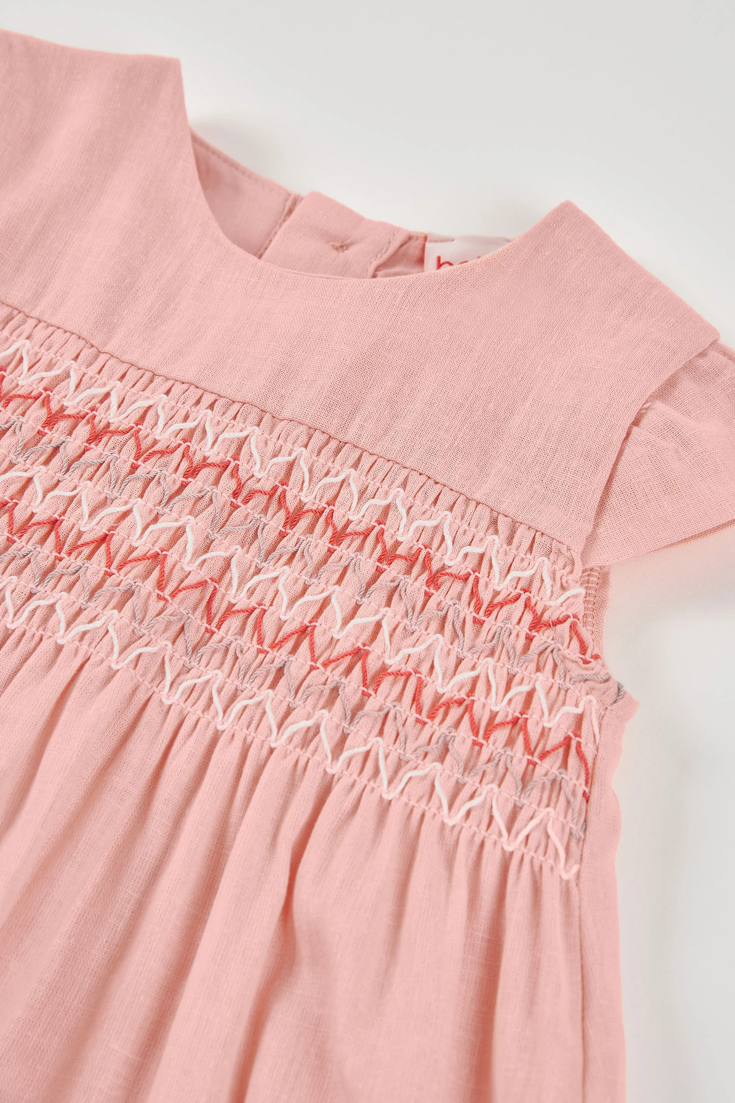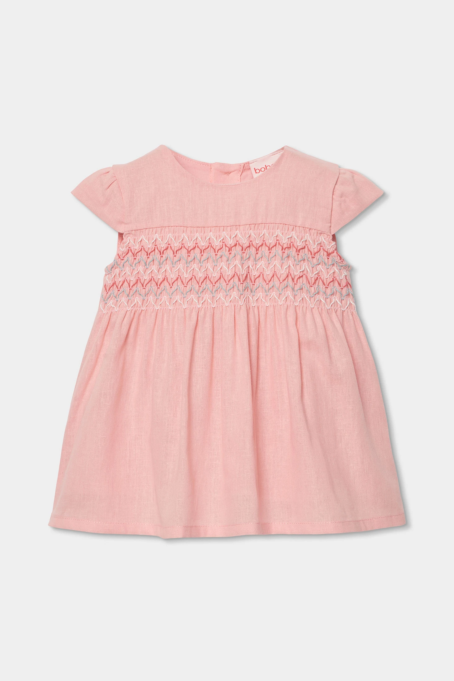 Kleid aus Leinen in Lachsfarbe, perfekt für Babys, bietet Komfort und Stil. Es hat ein zartes Design mit gerafften Details im oberen Bereich, die ihm eine einzigartige Note verleihen. Das Leinenmaterial ist frisch und atmungsaktiv, ideal für die wärmeren Monate. Erhältlich in Größen von 1 Monat bis 2 Jahren, passt es sich perfekt dem Wachstum Ihres Kleinen an. Die sanfte Lachsfarbe ist vielseitig und ermöglicht eine einfache Kombination für jeden besonderen Anlass. Ein charmantes und bequemes Kleid, das Stil und Frische garantiert.