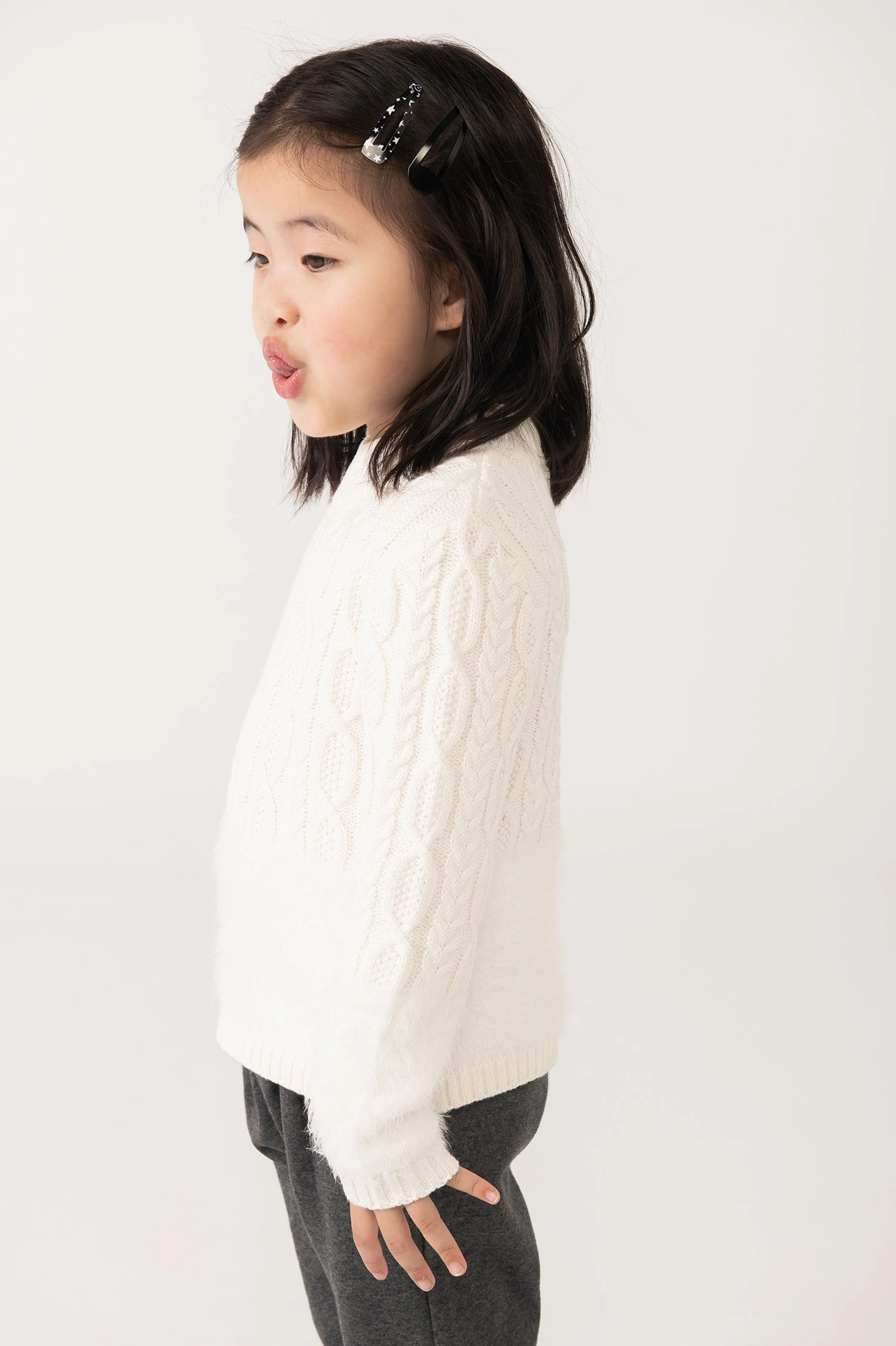 Strickpullover in Weiß für Baby-Mädchen, perfekt, um Ihre Kleine während der kälteren Monate warm zu halten. Hergestellt aus einem feinen Strickgewebe, das Weichheit und Komfort gewährleistet, besticht dieser Pullover durch sein zartes Zopfmuster, das einen eleganten Touch verleiht. Erhältlich in Größen von 12 Monaten bis 10 Jahren, lässt er sich leicht mit Hosen oder Röcken kombinieren, um entzückende und praktische Outfits für jeden Anlass zu kreieren. Seine hochwertige Zusammensetzung garantiert Langlebigkeit und Wärme, wodurch er zu einem unverzichtbaren Bestandteil der Kinder-Wintergarderobe wird.