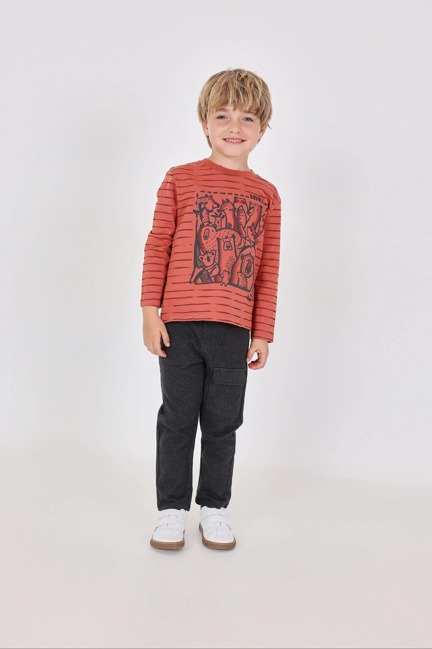 Dunkelgraue Hose für Jungen, ideal für die kälteren Monate des Jahres. Hergestellt aus einem weichen Flanellstoff, der Komfort und Wärme bietet. Der Grauton lässt sich mühelos mit jedem Kleidungsstück der Kinder-Garderobe kombinieren, während der verstellbare Kordelzug in der Taille für eine perfekte Passform sorgt. Erhältlich in Größen von 12 Monaten bis 10 Jahren, ist sie eine praktische und elegante Option für den täglichen Gebrauch.