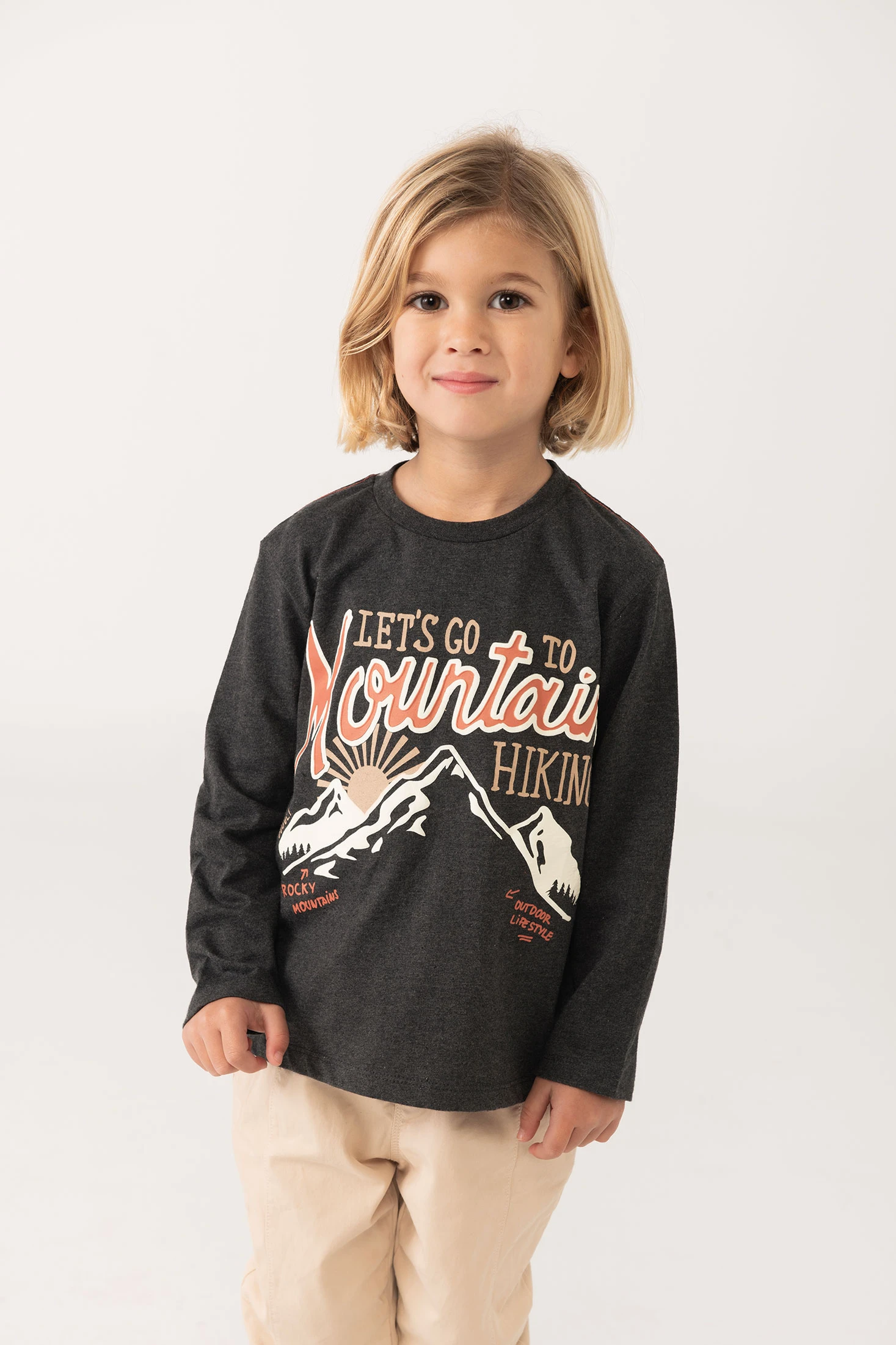 Graues Jungen-T-Shirt mit Bergdruck