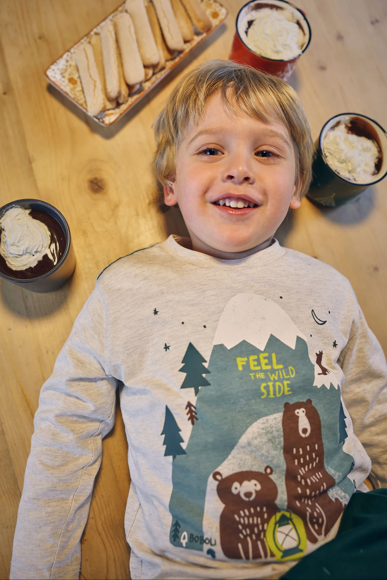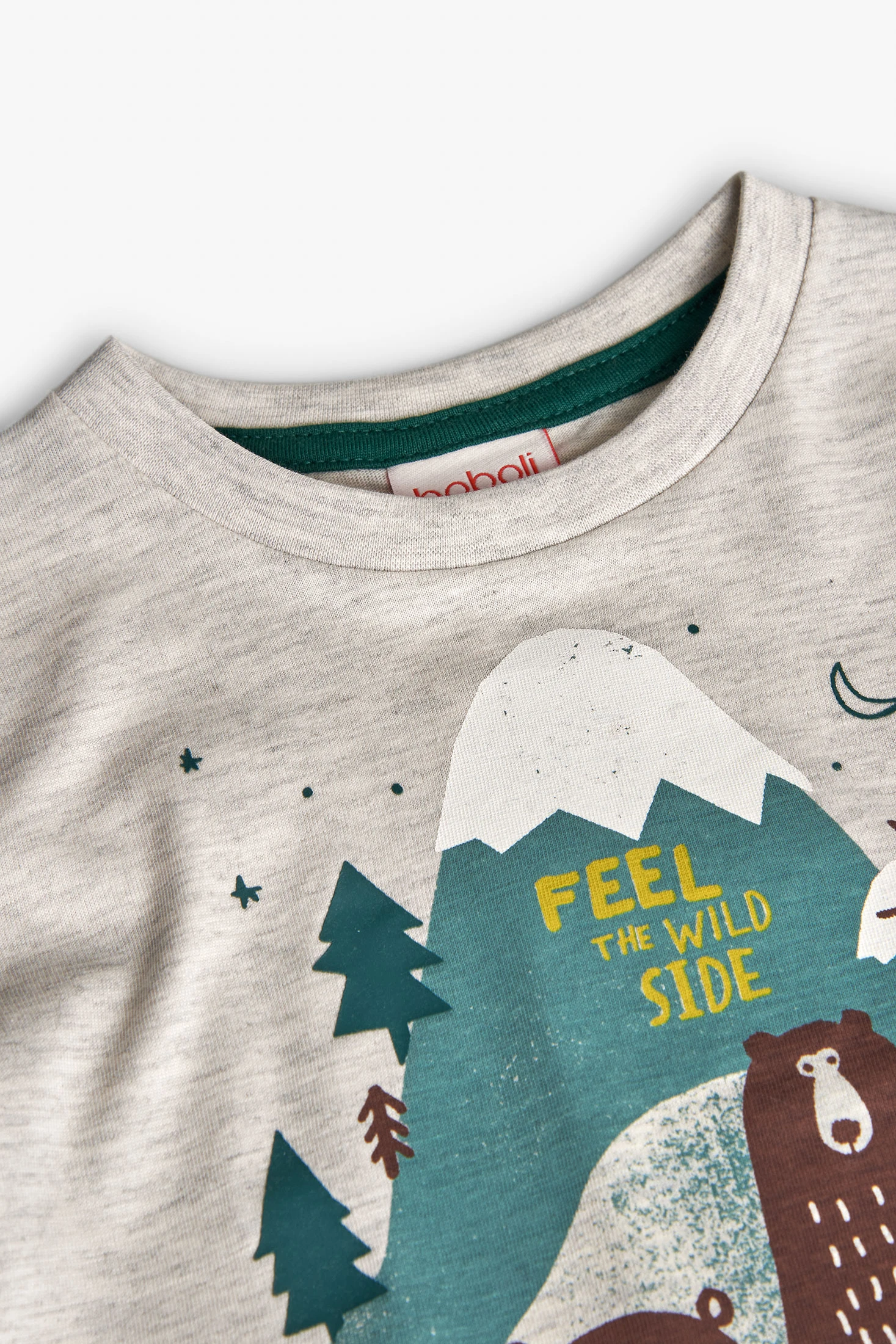 Beigefarbenes Strick-T-Shirt für Jungen mit Bären und Bergen