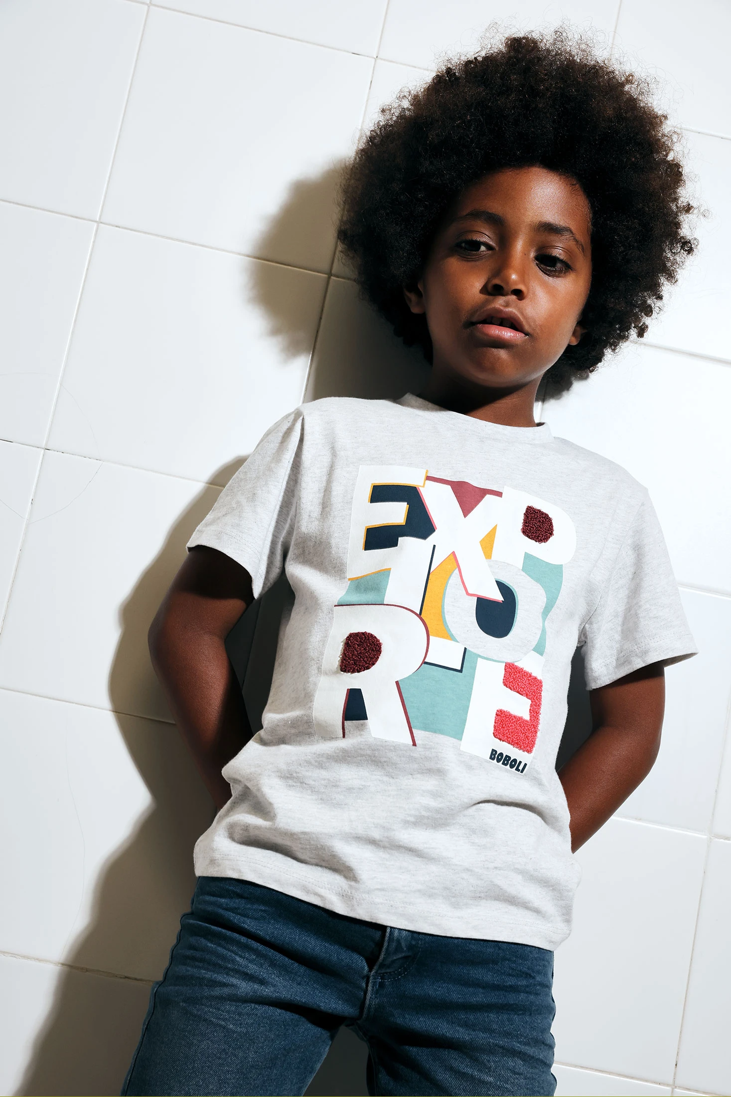 Jungen-T-Shirt aus rohweißem Strick mit Buchstaben