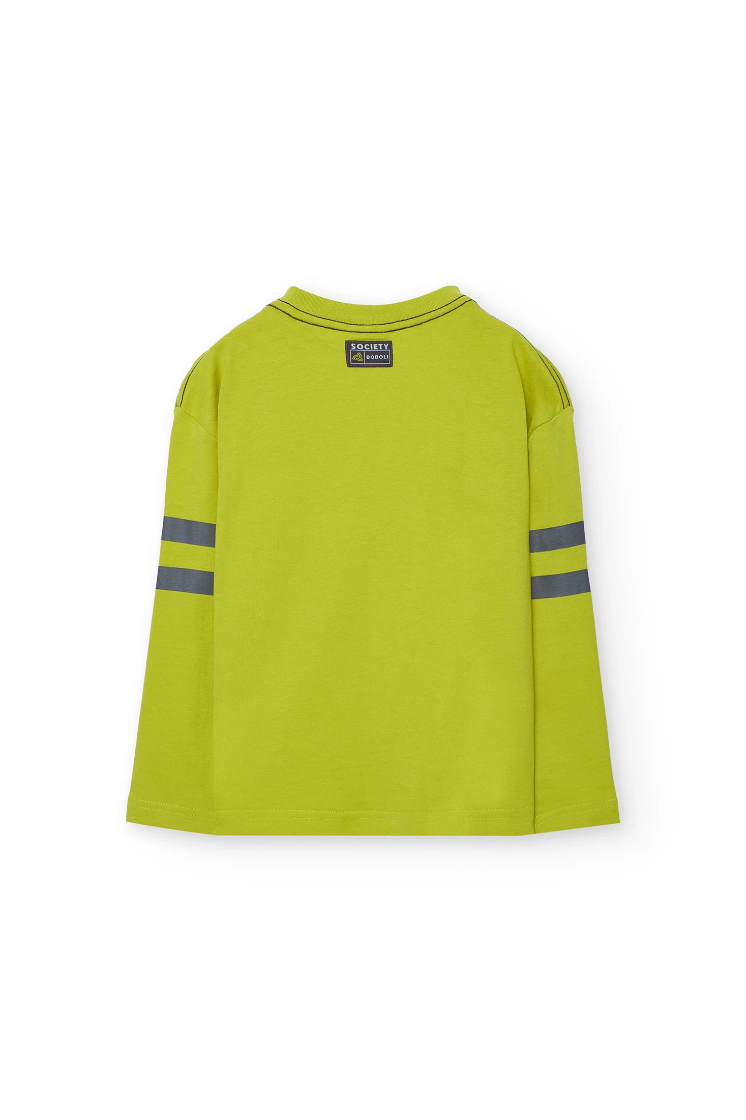 Grünes Baumwoll-T-Shirt für Jungen, vielseitig und unverzichtbar für die Herbst- und Wintergarderobe. Aus weichem und hochwertigem Baumwollstoff gefertigt, bietet es den ganzen Tag über Komfort und Bewegungsfreiheit. Sein klassischer Grünton erleichtert das Kombinieren mit verschiedenen Kleidungsstücken wie Jeans, Hosen oder einer Jacke, um legere und elegante Looks zu kreieren. Erhältlich in den Größen von 2 bis 14 Jahren, ist es eine praktische Wahl, die sich an verschiedene Altersgruppen und Stile anpasst. Perfekt für informelle Anlässe oder den Alltag, garantiert dieses T-Shirt Praktikabilität und Stil für die Kleinen.