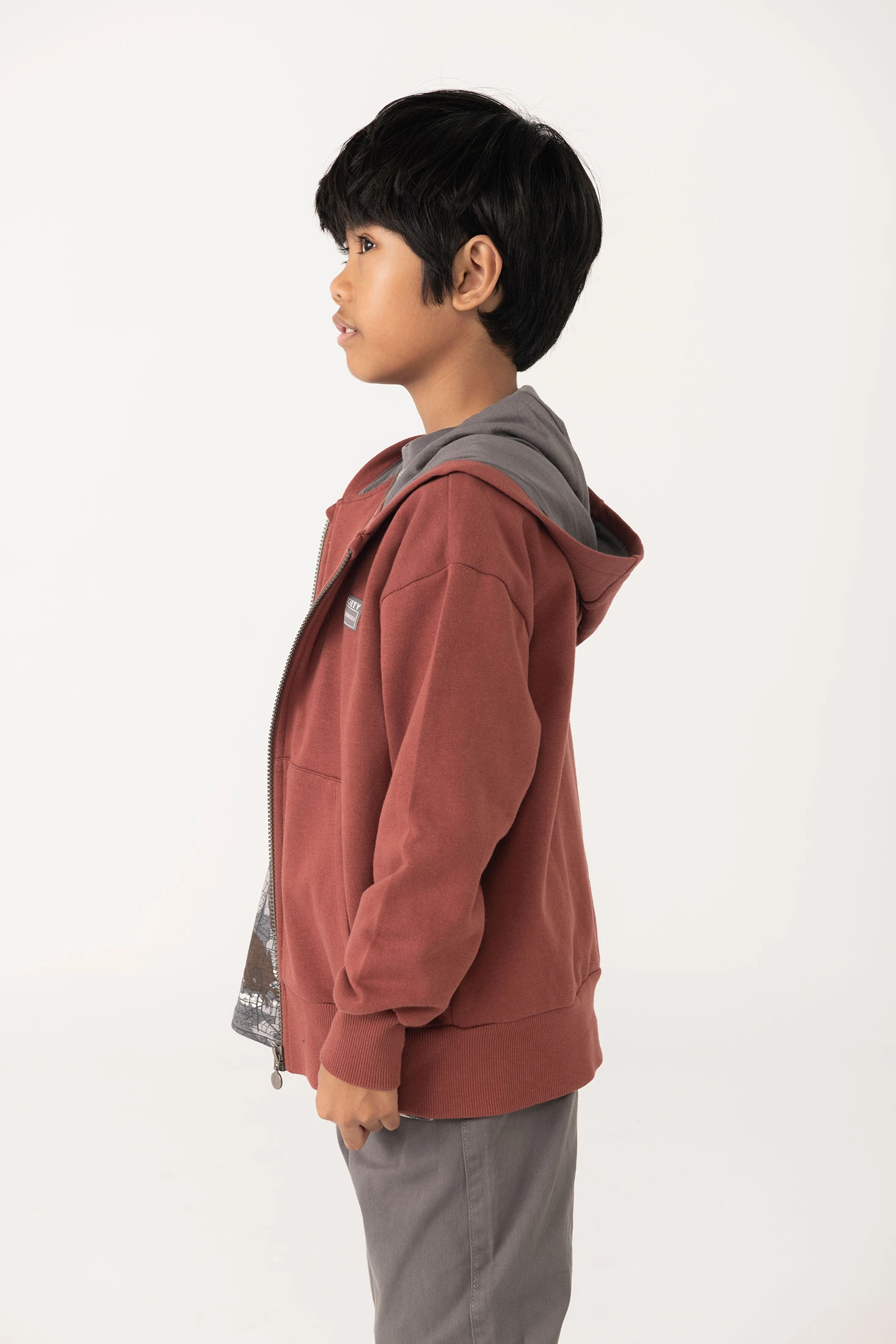 Kapuzen-Fleecejacke für Kinder in elegantem Braun, ideal für die Herbst- und Wintersaison. Das Design beinhaltet eine Kapuze und eine praktische Kängurutasche, die an kühleren Tagen Wärme und Komfort bietet. Hergestellt aus weichen und warmen Materialien, ist dieses Kleidungsstück perfekt für den täglichen Gebrauch. Erhältlich in Größen von 2 bis 14 Jahren, vereint es Funktionalität und Stil und bietet Vielseitigkeit für jedes lässige Outfit.