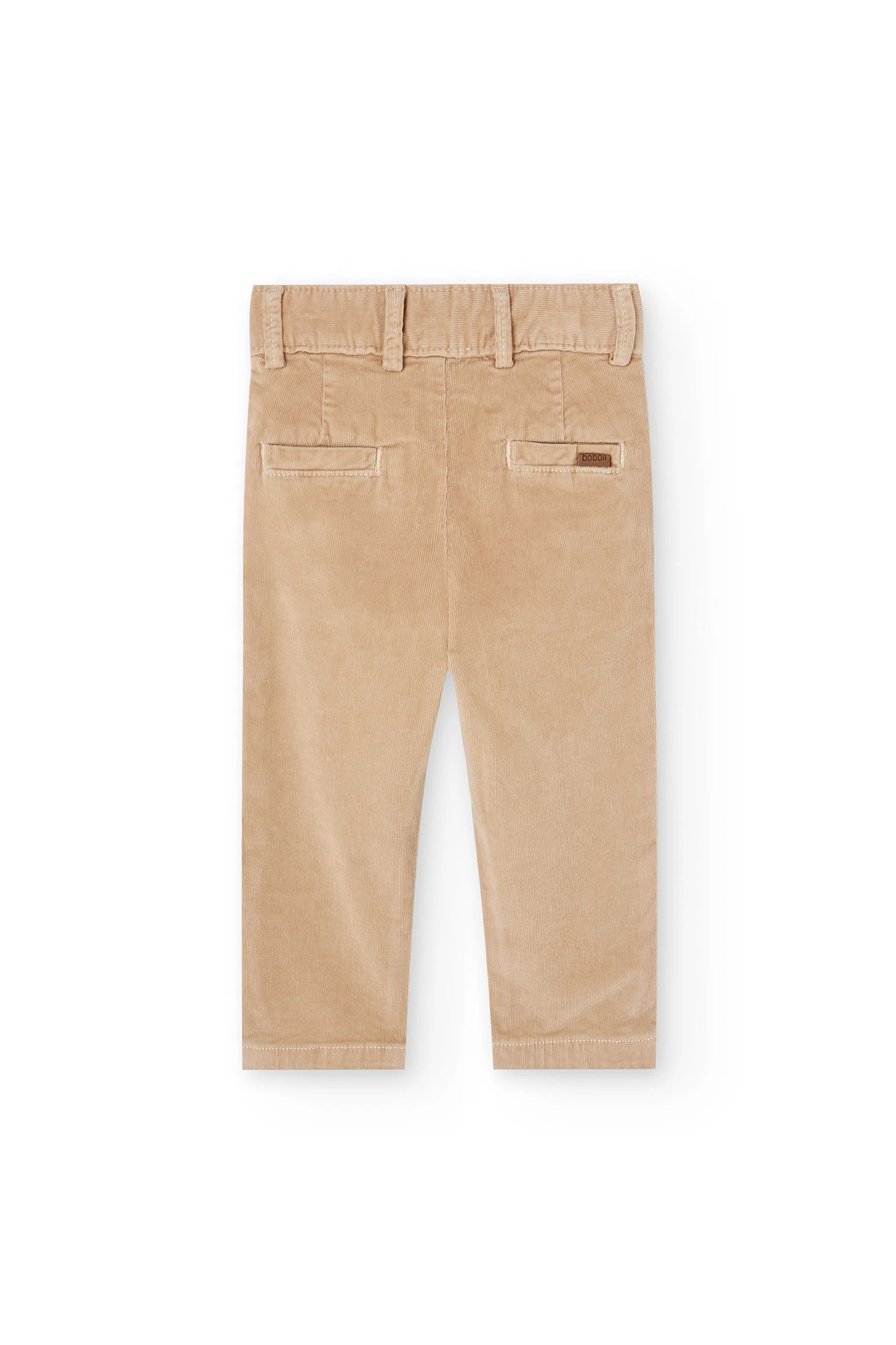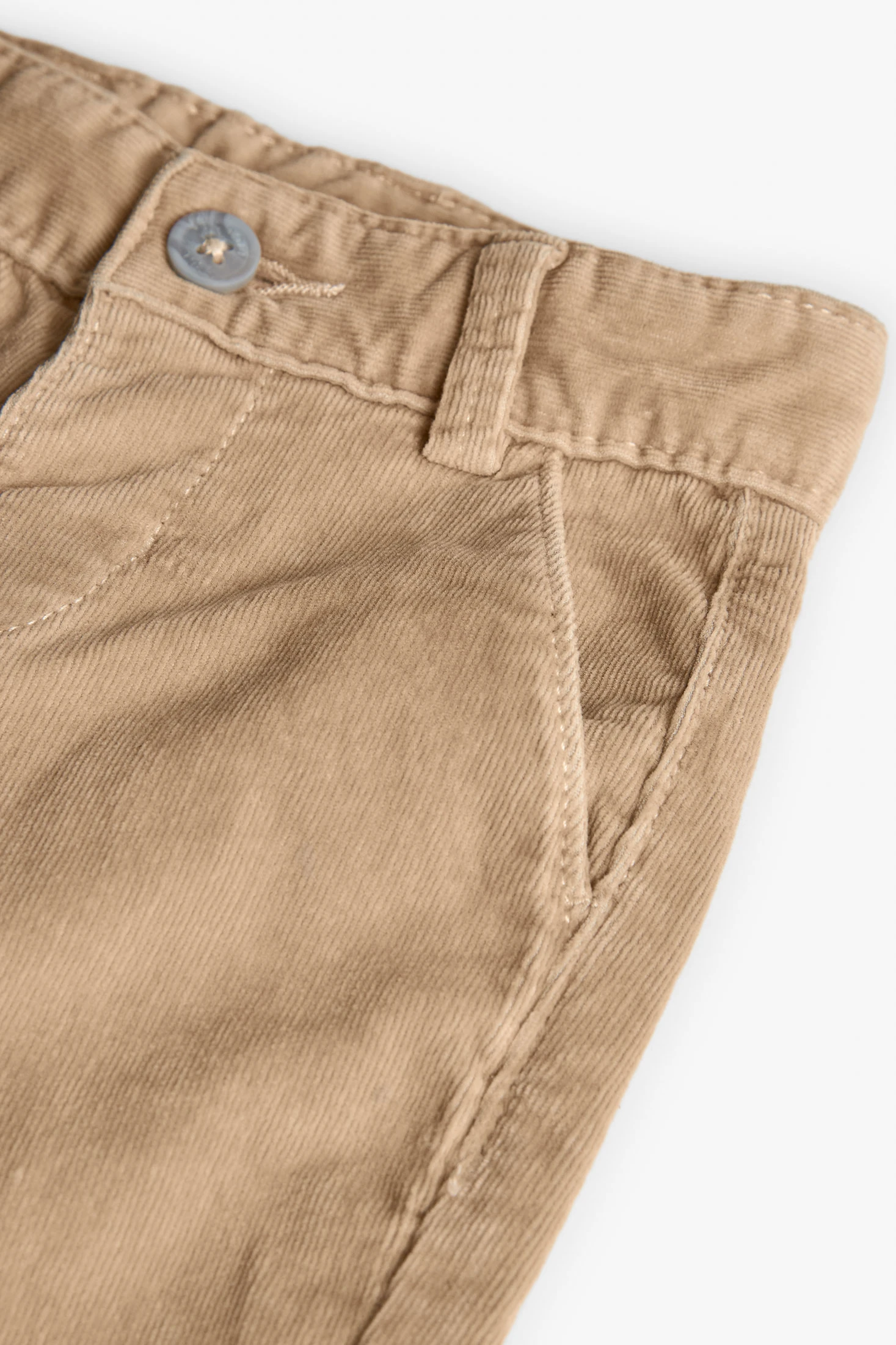 Beigefarbene Mikrokordhose für Mädchen, entworfen, um Komfort und Stil das ganze Jahr über zu bieten. Hergestellt aus einem weichen und elastischen Material, garantiert sie Bewegungsfreiheit, ideal für die täglichen Aktivitäten des Kindes. Ihr neutraler Ton erleichtert das Kombinieren mit Pullovern oder Jacken und schafft einen modernen und anpassungsfähigen Look. Ausgestattet mit einem verstellbaren Gummibund bietet sie eine präzise Passform und dauerhaften Komfort. Erhältlich in Größen von 12 Monaten bis 10 Jahren, ist sie ein unverzichtbares Stück in der Kinderbekleidung.