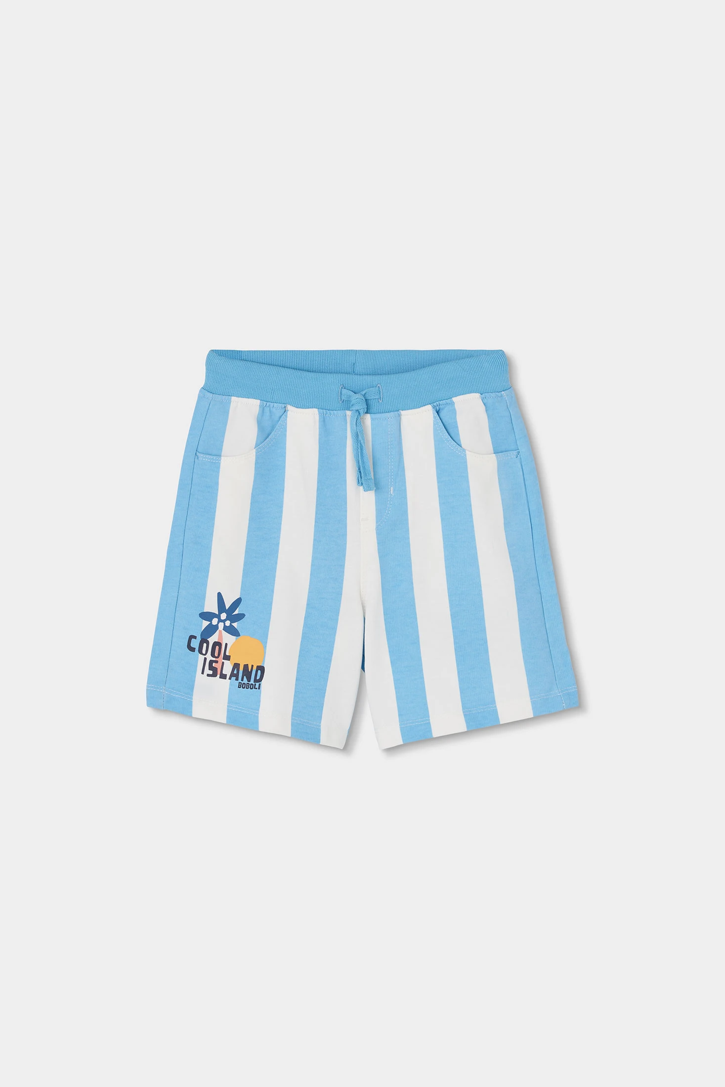Gestreifte Frottee-Bermudashorts für Jungen, perfekt für die Sommersaison, mit einem Design aus vertikalen Streifen in Blau und Weiß, die durch ihren frischen und modernen Stil hervorstechen. Das weiche Material sorgt den ganzen Tag über für Komfort. Sie verfügen über einen elastischen Bund mit verstellbarem Kordelzug, der eine perfekte Passform ermöglicht. Erhältlich in Größen von 12 Monaten bis 10 Jahren. Ideal in Kombination mit lässigen T-Shirts für einen entspannten und fröhlichen Look an sonnigen Tagen.