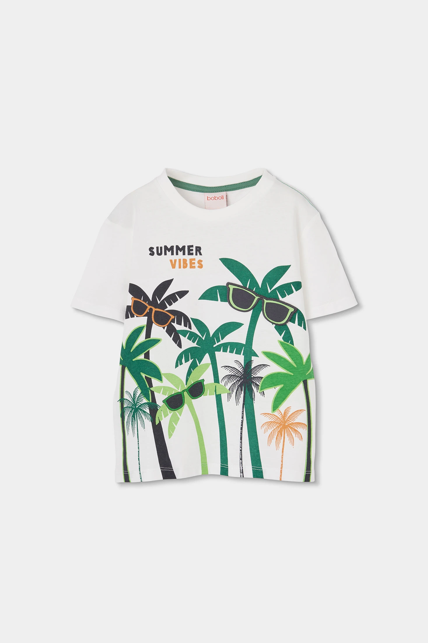 Baumwoll-T-Shirt für Jungen in Weiß. Mit einem großen, lustigen Druck und aufgesetzten Details. Der Baumwollstoff sorgt für Frische und Komfort, ideal für den täglichen Gebrauch. Erhältlich in Größen von 12 Monaten bis 10 Jahren, bietet Flexibilität, um mit dem Wachstum Ihres Kleinen mitzuhalten. Der klassische Schnitt und der Rundhalsausschnitt machen es einfach, mit verschiedenen Kleidungsstilen zu kombinieren und verleihen dem täglichen Outfit einen lustigen Akzent.