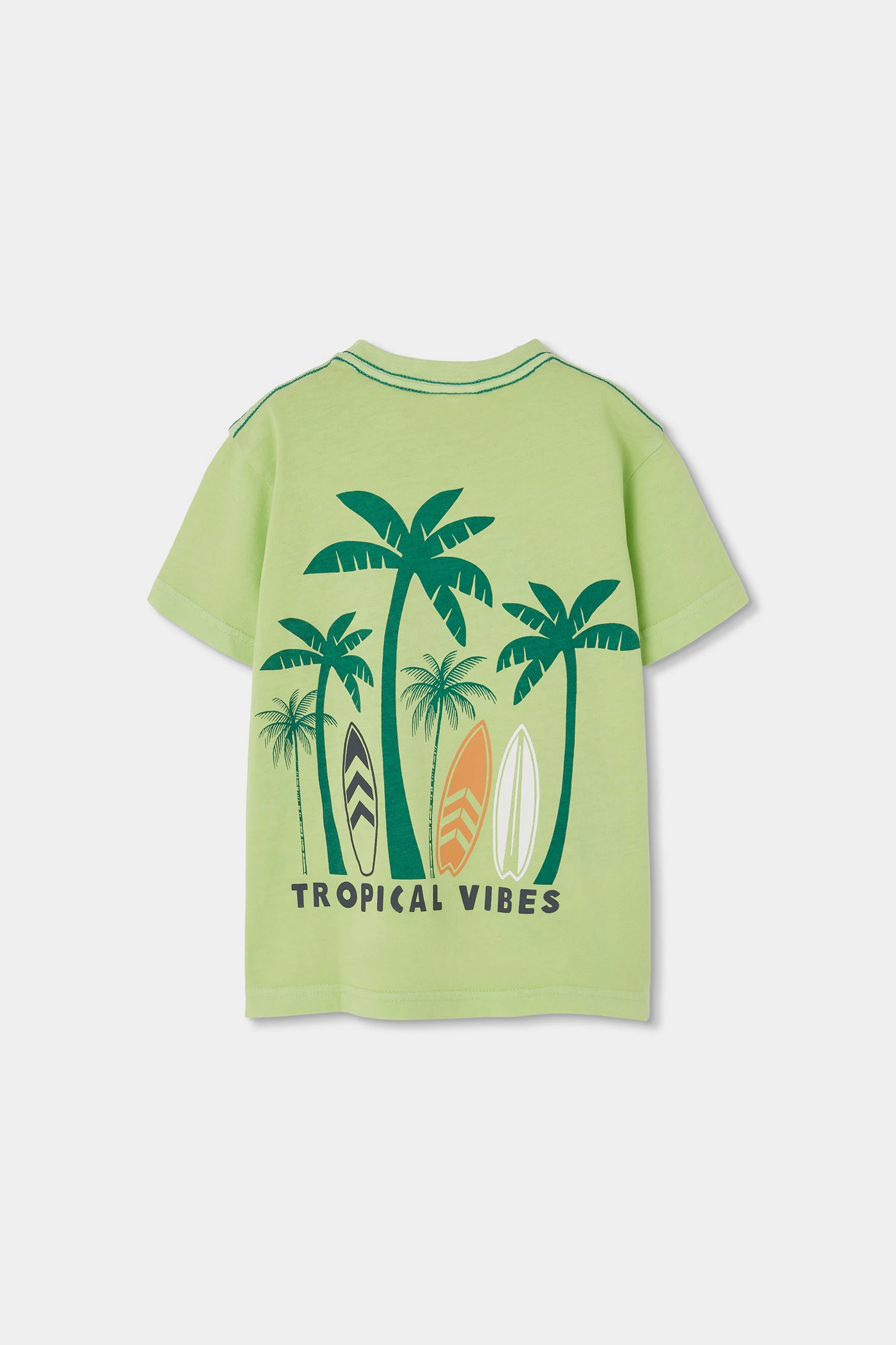 Baumwoll-T-Shirt für Jungen, ideal für warme Jahreszeiten. In hellem Grün, mit einem schlichten Design und einer dekorativen Tasche mit Palmen und der Aufschrift "Palm Tree". Der Baumwollstoff sorgt für Frische und Komfort, perfekt für den täglichen Gebrauch. Erhältlich in Größen von 12 Monaten bis 10 Jahren, bietet sie Flexibilität, um sich dem Wachstum Ihres Kleinen anzupassen. Der klassische Schnitt und der Rundhalsausschnitt machen es einfach, mit verschiedenen Kleidungsstilen zu kombinieren und einen Hauch von Spaß in sein tägliches Outfit zu bringen.