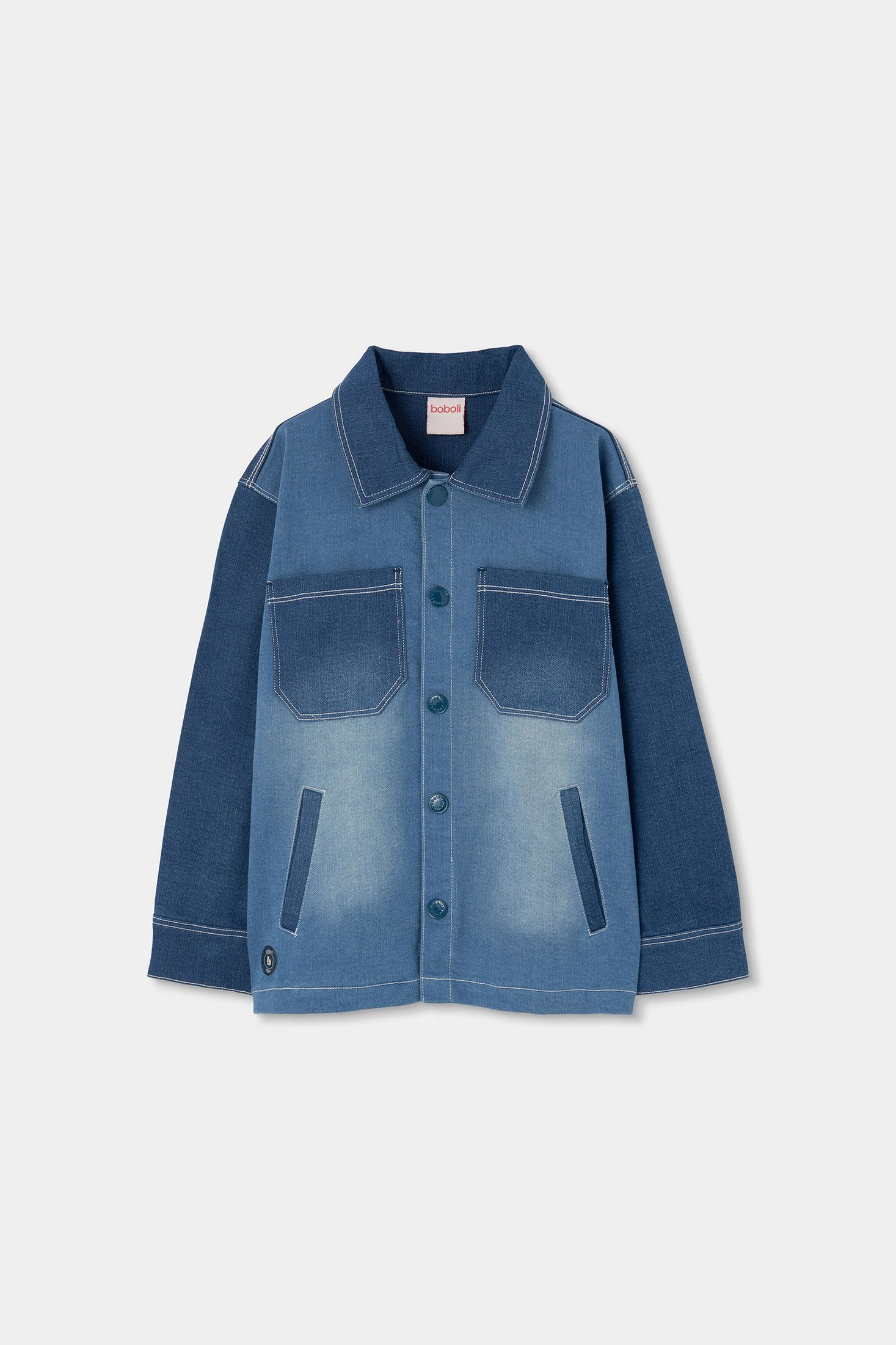 Blaue Denim-Hemdjacke für Jungen, perfekt für die Übergangszeit. Gefertigt aus weichem Denim-Stoff, bietet sie Komfort und einen lässigen Stil. Sie präsentiert ein minimalistisches Design mit Fronttaschen und Knöpfen vorne, ideal für einen modernen Look. Lange Ärmel und klassischer Kragen verleihen einen eleganten Touch. Erhältlich in Größen von 12 Monaten bis 10 Jahren. Perfekt zum Kombinieren mit Basic-Shirts, ist sie ein vielseitiges Kleidungsstück für den Alltag.