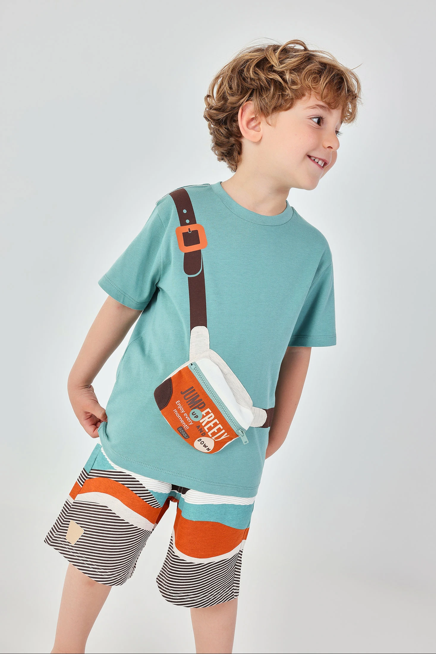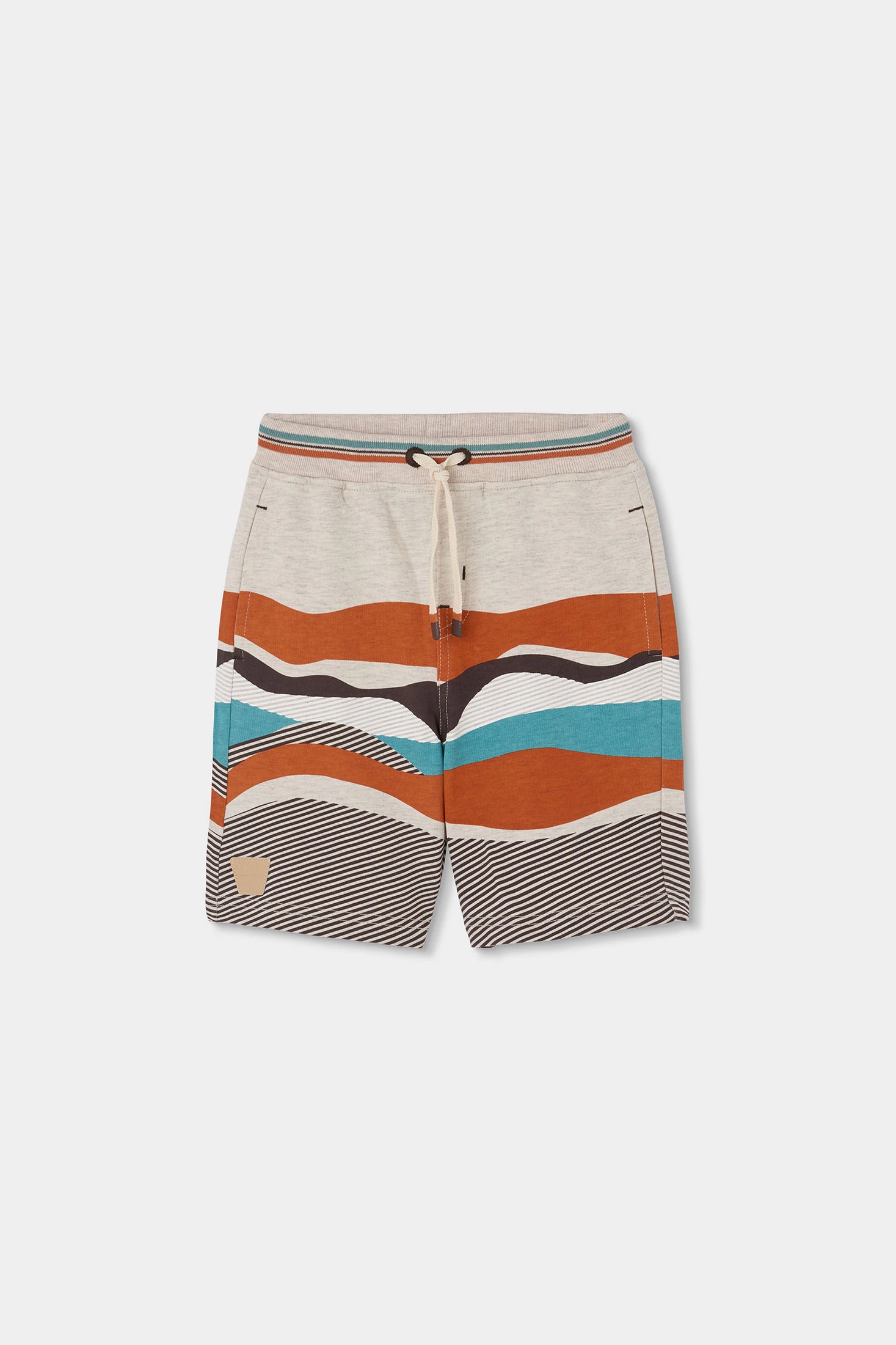 Beige Sweatshorts mit Streifen in verschiedenen Farben für Jungen, perfekt für einen lässigen und bequemen Stil. Mit einem Streifendesign in Erdtönen, Blau und Schwarz, verleihen sie einen modernen und fröhlichen Touch. Hergestellt aus weichem und elastischem Stoff, sind sie ideal, um die Bewegungen beim Spielen zu erleichtern. Sie verfügen über einen verstellbaren Bund mit Kordelzug für eine bessere Passform. Erhältlich in Größen von 12 Monaten bis 10 Jahren, sind sie eine vielseitige Option für jeden Anlass. Sie lassen sich leicht mit basic T-Shirts für einen entspannten Look kombinieren.
