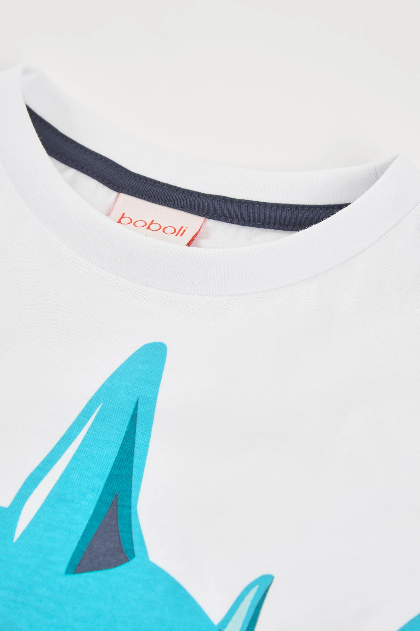 Kinder T-Shirt aus weißer Baumwolle mit Hai.