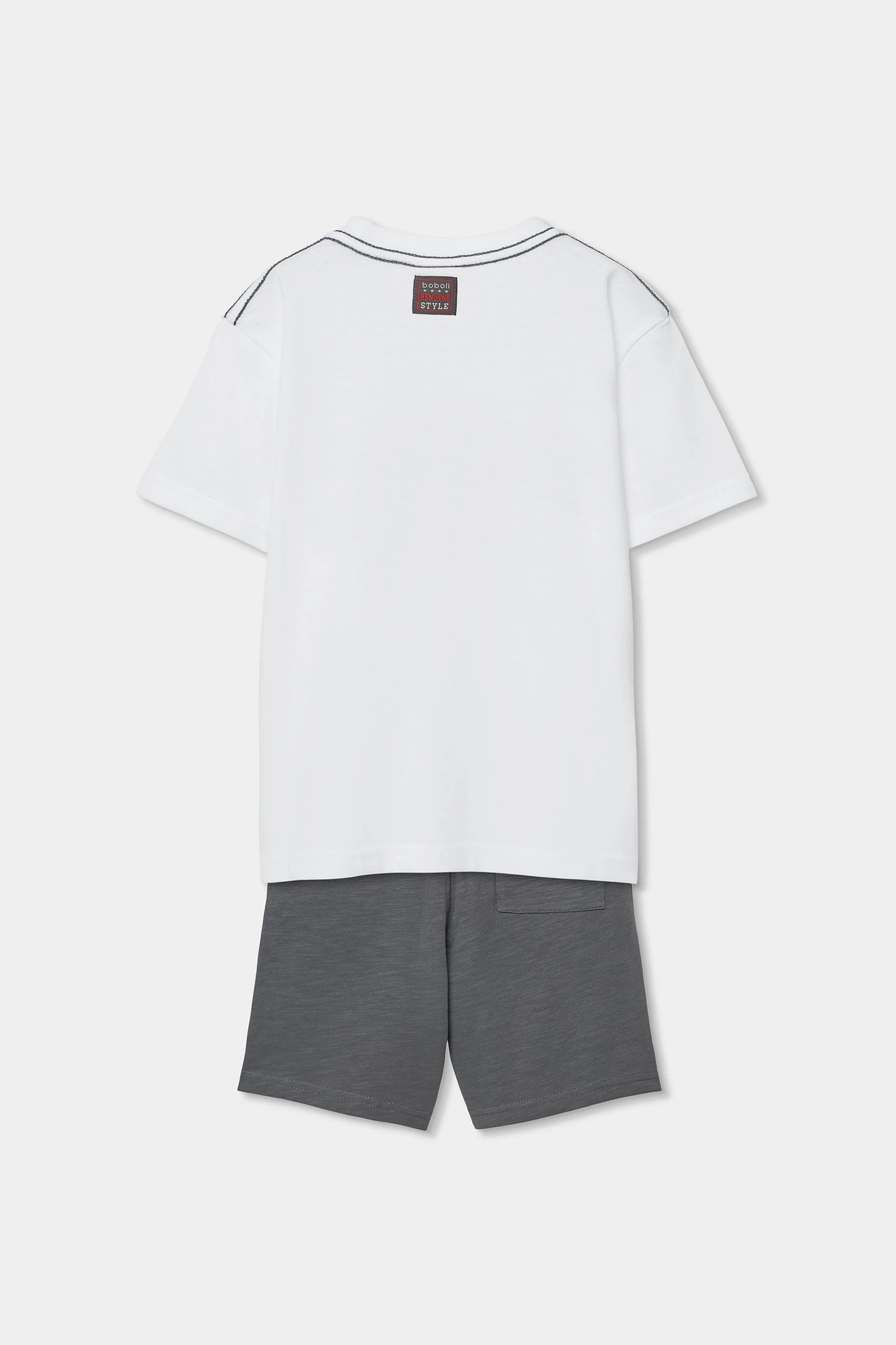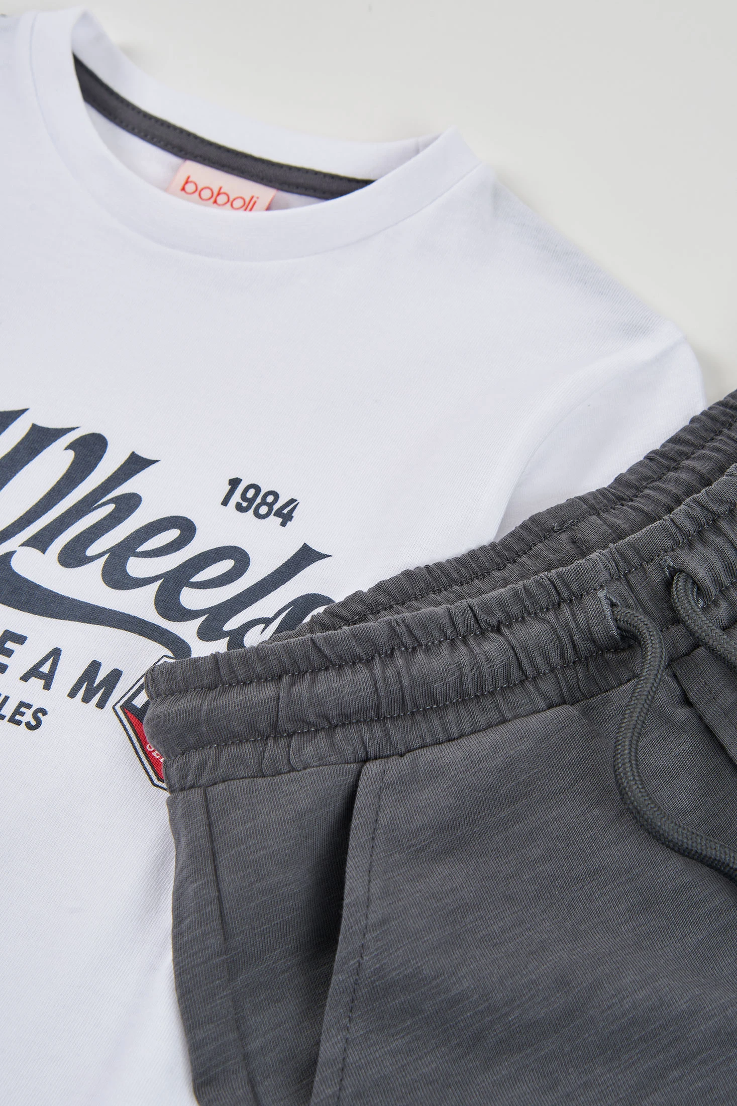 Set für Jungen, das ein weißes T-Shirt mit einem grafischen Design zum Thema Autos und graue Shorts umfasst. Aus Strickstoff gefertigt, ist es bequem und leicht, ideal für den Alltag. Das T-Shirt hat einen Rundhalsausschnitt und kurze Ärmel, perfekt für lässige Aktivitäten. Die verfügbaren Größen reichen von 2 bis 14 Jahren. Das moderne und sportliche Design macht es ideal, um es einfach mit anderen Freizeitkleidungsstücken zu kombinieren.