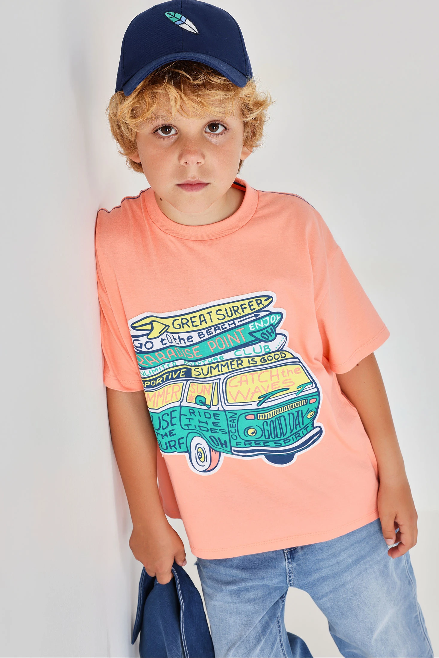 Rosa Baumwollstrick-T-Shirt für Jungen, ideal für den Alltag. Sein Strickmaterial sorgt für Komfort und Frische. Es hat ein auffälliges Design mit einer Illustration eines Vans und farbenfrohen Texten auf der Vorderseite, die ihm eine lustige Note verleihen. Rundhalsausschnitt und kurze Ärmel, perfekt für warmes Wetter. Erhältlich in den Größen von 2 bis 14 Jahren, ist es ein vielseitiges Kleidungsstück, das gut mit Shorts oder Jeans kombiniert werden kann, ideal für einen lässigen und entspannten Stil.