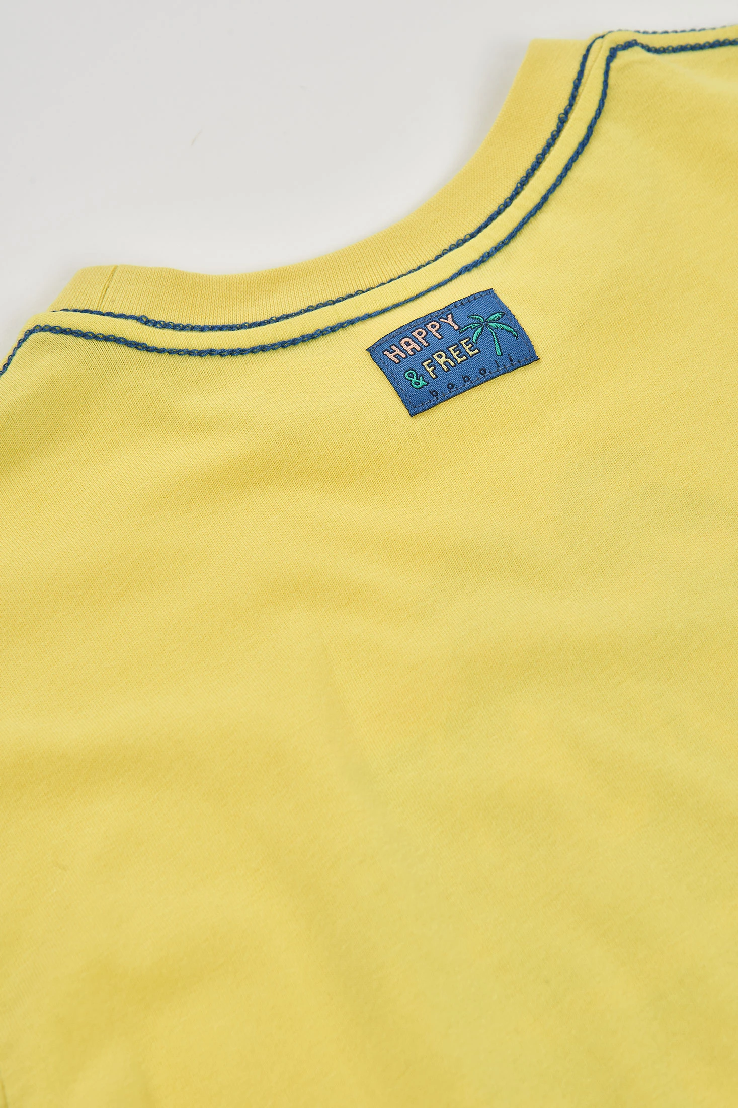 Kurzärmeliges T-Shirt für Jungen, aus Zitronen-Jersey-Baumwolle gefertigt, ideal, um Komfort und Stil zu bieten. Es zeigt ein Design mit Palmen und Text, das ihm einen lustigen und sommerlichen Touch verleiht. Perfekt für Kinder von 2 bis 14 Jahren, bietet es eine vielseitige Option zum Kombinieren mit Hosen oder Shorts. Sein weiches Material ist ideal für den Alltag und bietet Wärme in den Sommermonaten. Ein Kleidungsstück, das nicht nur funktional ist, sondern auch ein Trend-Element zur Kinderbekleidung hinzufügt.
