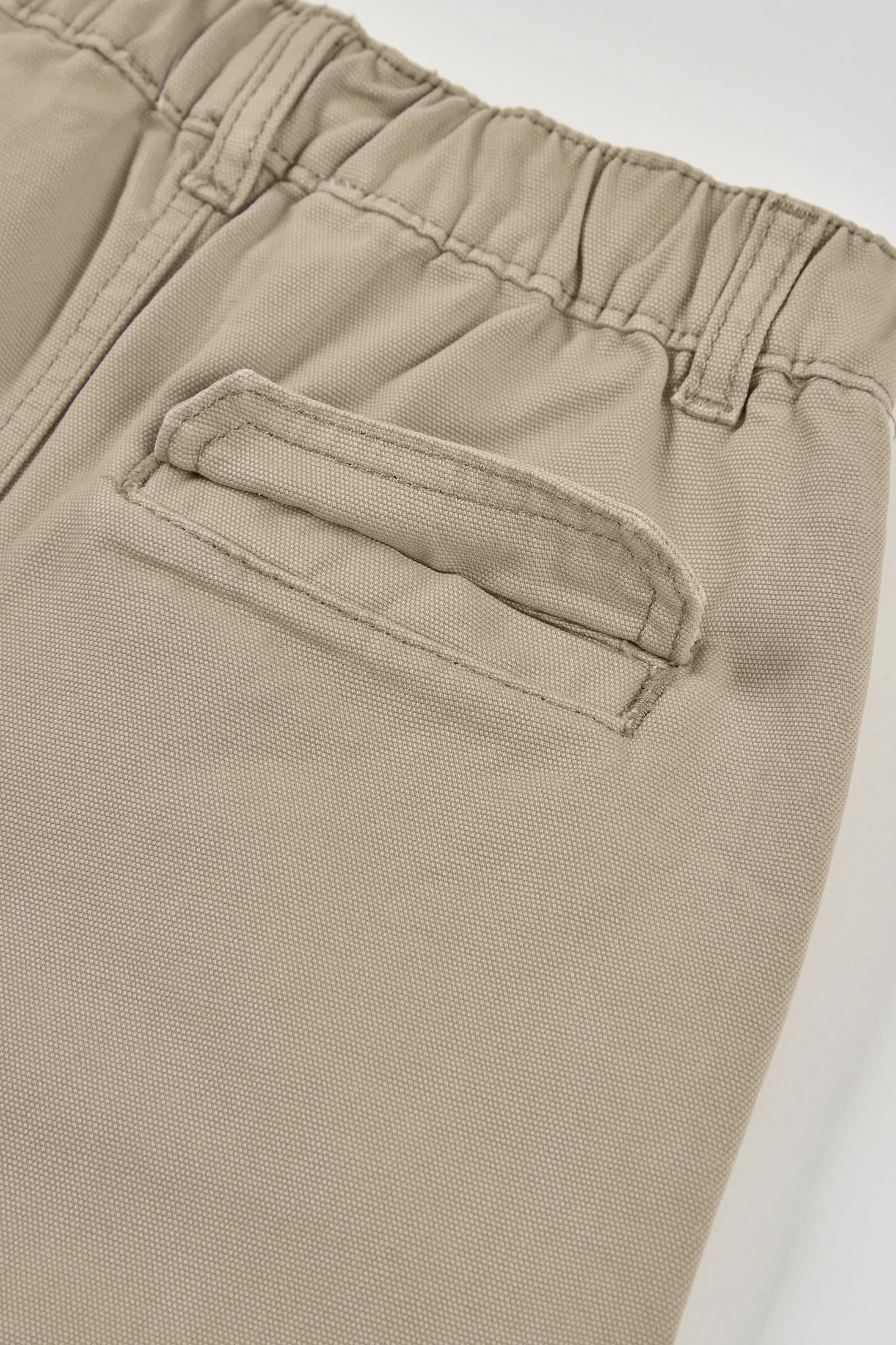 Beige Baumwoll-Bermudas, ideal für Kinder, bieten Komfort und Stil. Ihr schlichtes und glattes Design macht sie perfekt zum Kombinieren mit verschiedenen Kleidungsstücken. Mit einem elastischen Bund für bessere Passform. Hergestellt für Langlebigkeit, sind sie eine praktische Wahl für den Alltag. Erhältlich in Größen von 2 bis 14 Jahren, passen sie sich dem Wachstum der Kinder an. Ideal für den Sommer, macht ihre Vielseitigkeit sie perfekt für Aktivitäten im Freien. Bermudas ohne Muster, was ihren klassischen und zeitlosen Stil unterstreicht.