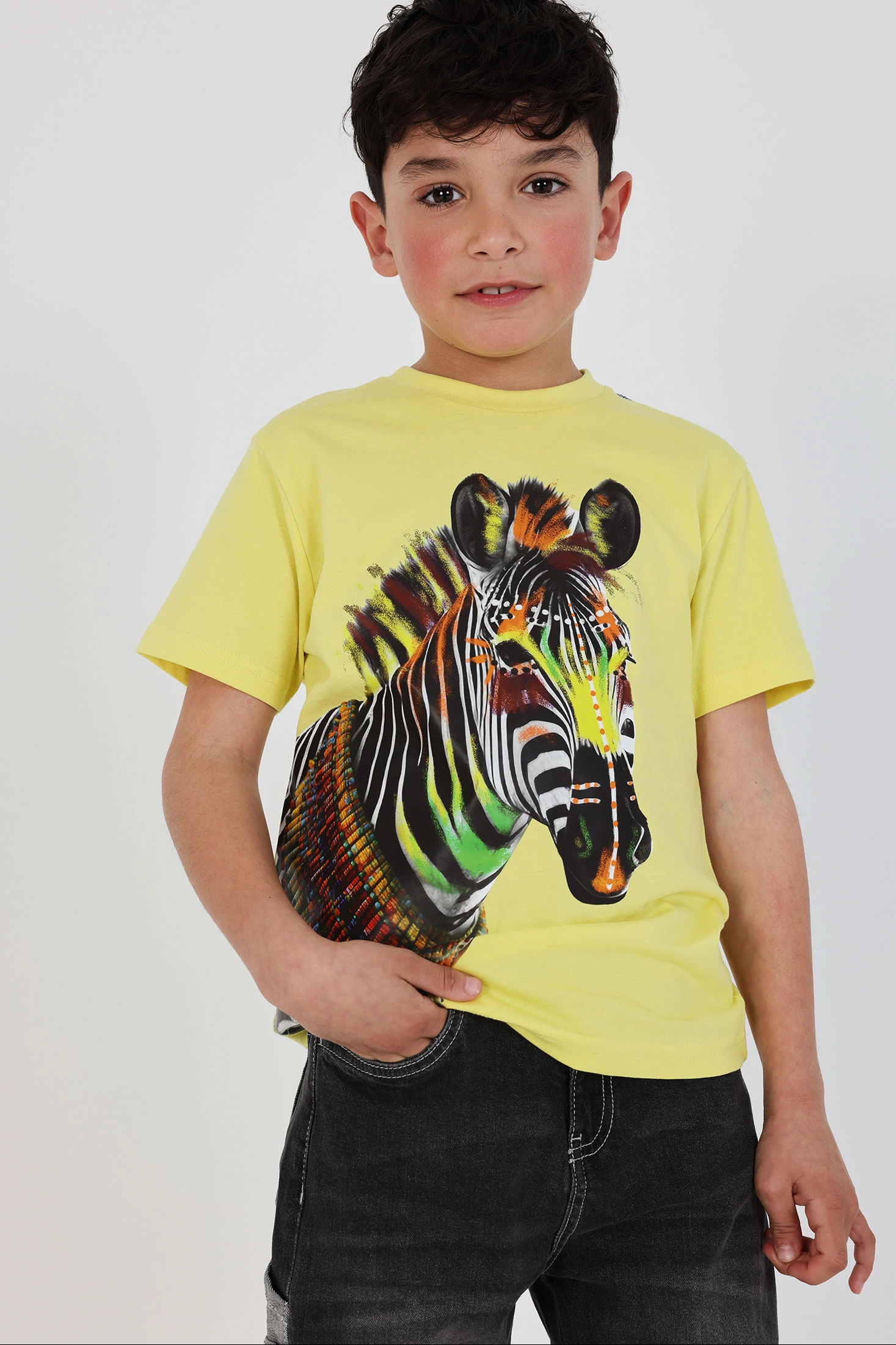 Jungen T-Shirt Baumwolle Farbe Limette Zebra
