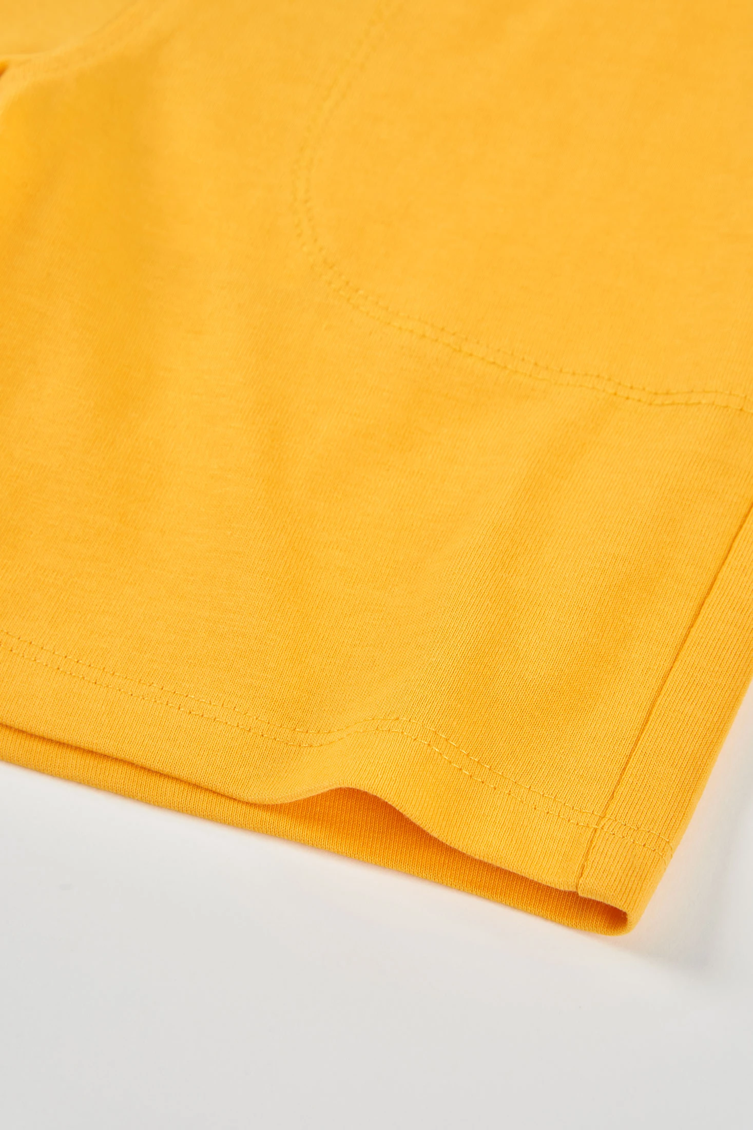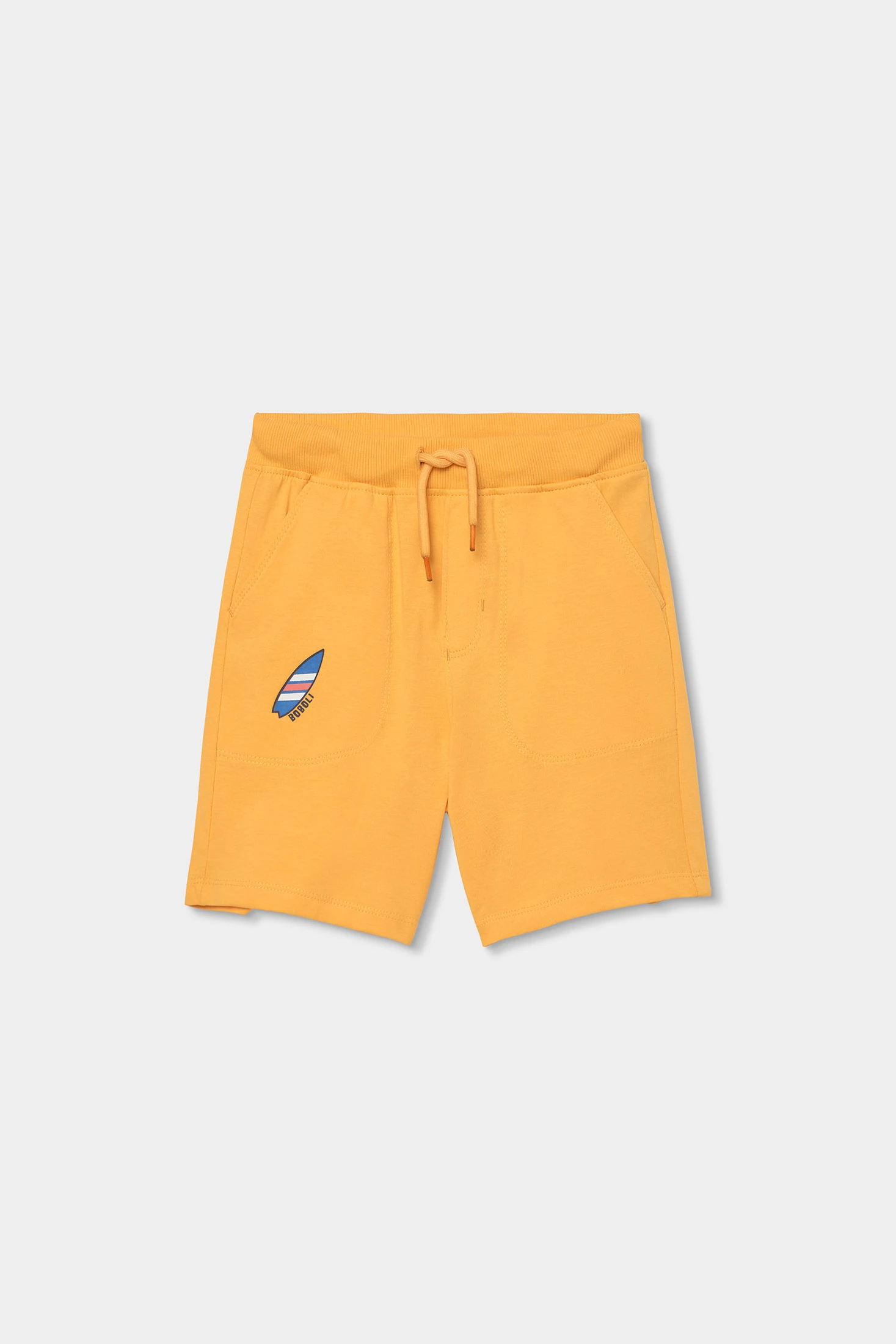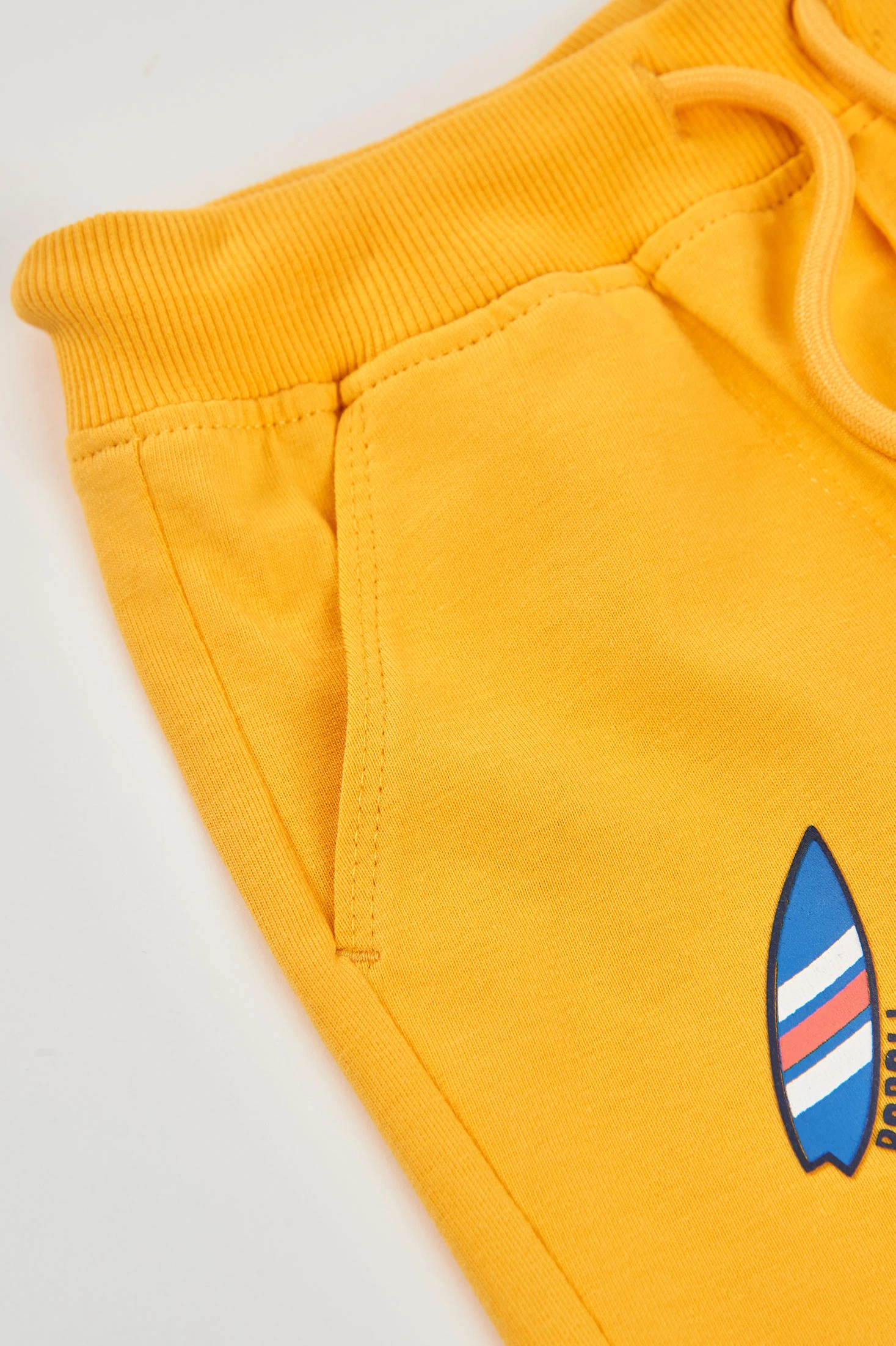 Gelbe Strick-Bermudashorts für Kinder, ideal für die Frühlings- und Sommersaison. Hergestellt aus weichem und bequemem Stoff, haben sie ein einfaches Design mit Details in einem Muster, das an ein Surfbrett erinnert. Der elastische Bund mit verstellbarem Kordelzug sorgt für einen bequemen Sitz. Erhältlich in Größen von 12 Monaten bis 14 Jahren, sind sie perfekt für Aktivitäten im Freien. Die leuchtende Farbe verleiht jedem Outfit eine fröhliche Note und passt perfekt zu leichten T-Shirts für einen lässigen und ungezwungenen Stil.