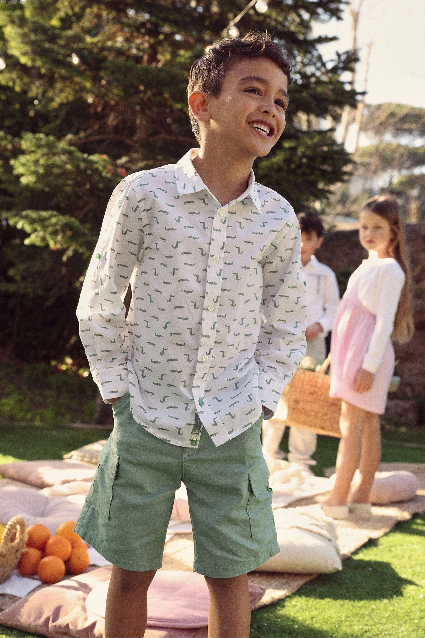 Grüne Leinen-Bermuda, perfekt für Sommertage, bietet dank ihres leichten und frischen Gewebes Komfort und Stil. Mit klassischem Design und Cargo-Taschen ist sie funktional für jede Aktivität. Verfügbar in Größen von 12 Monaten bis 10 Jahren, passt sie sich dem Wachstum der Kleinen an. Ihre grüne Farbe macht sie vielseitig und einfach kombinierbar mit bunten T-Shirts oder lustigen Prints. Ein essentielles Kleidungsstück für einen lässigen und frischen Look an den heißesten Tagen.