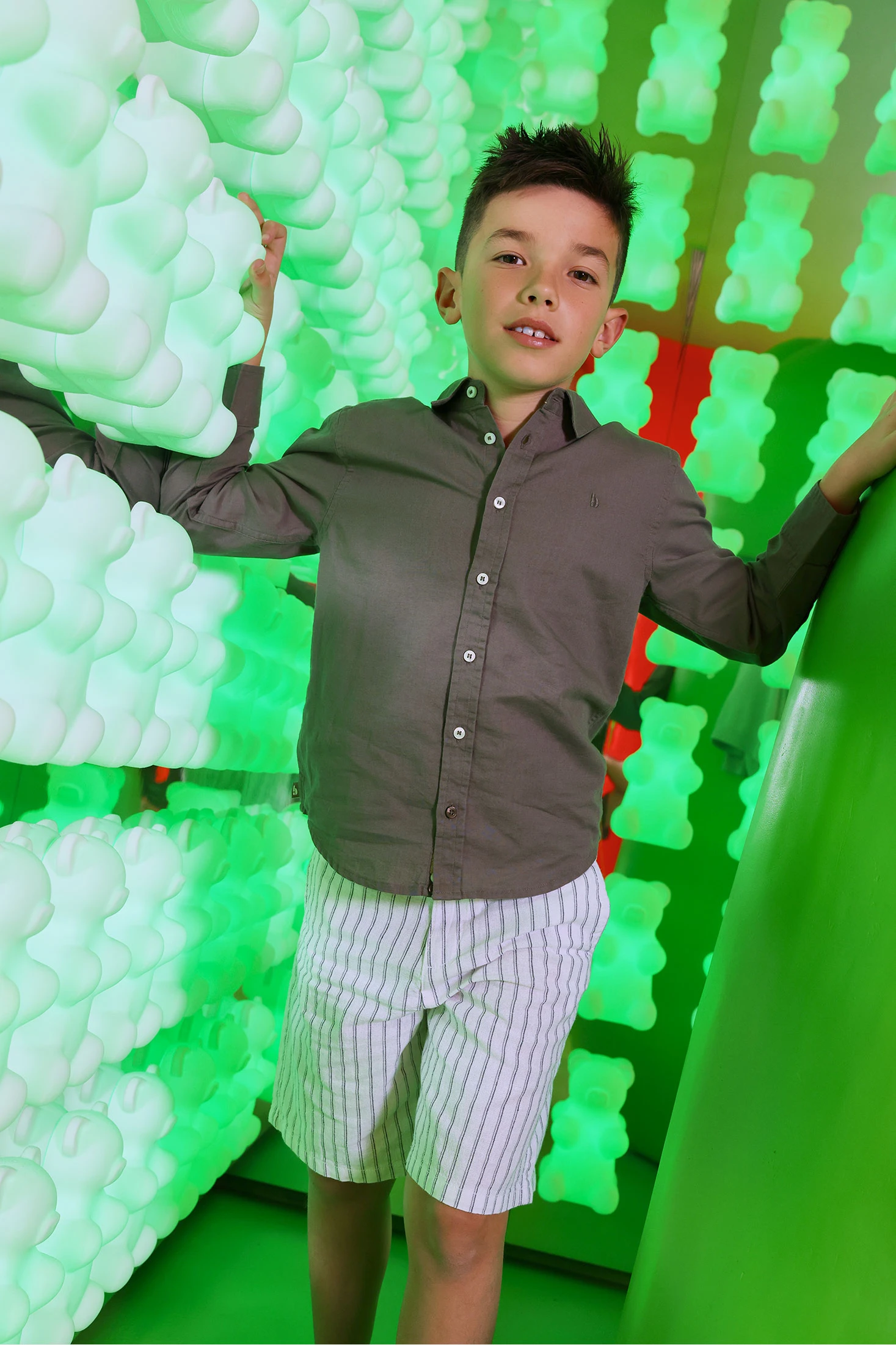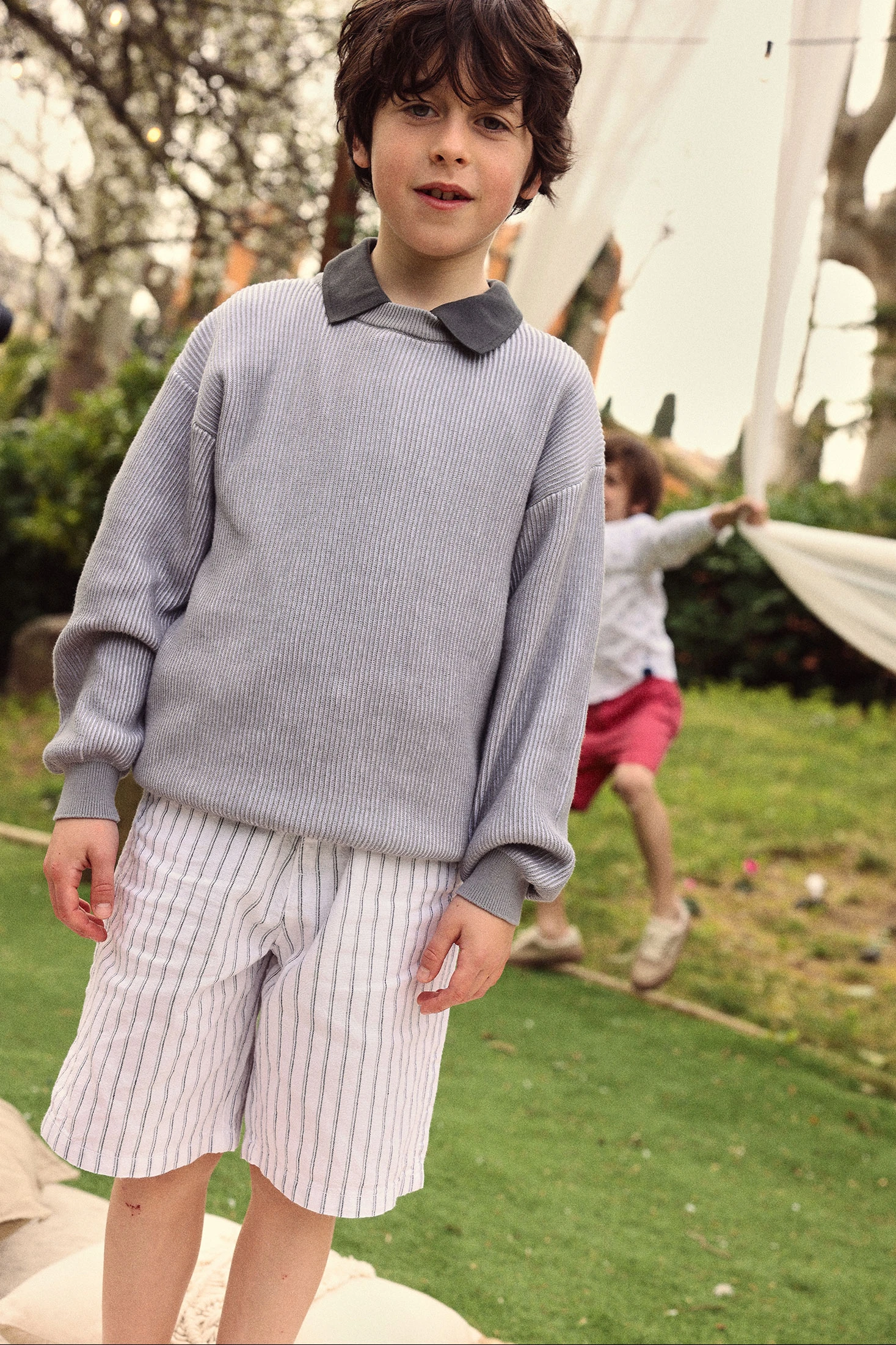 Gestreifte Leinen-Bermudas in Schwarz-Weiß sind ideal für warmes Klima, dank ihres leichten und atmungsaktiven Materials. Das Design mit vertikalen Streifen in Schwarz und Weiß verleiht einen klassischen und eleganten Touch. Erhältlich in Größen von 2 bis 14 Jahren, sind sie perfekt für wachsende Kinder geeignet. Ihre funktionale Struktur umfasst Gürtelschlaufen und einen Knopfverschluss, die einen bequemen Sitz gewährleisten. Perfekt zum Kombinieren mit T-Shirts oder leichten Hemden, verleihen sie jedem lässigen Sommeranlass einen frischen und eleganten Stil.