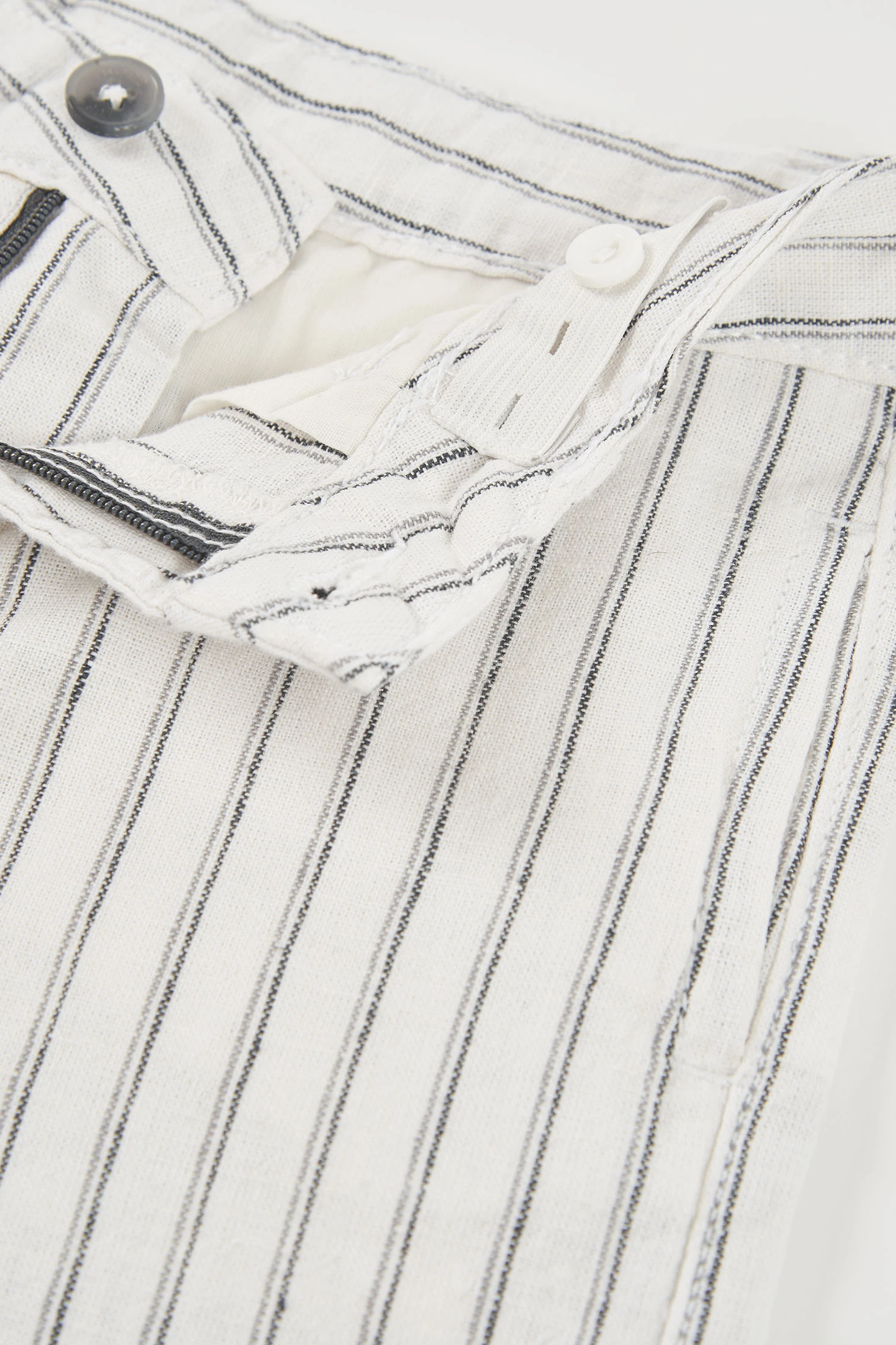 Gestreifte weiße und schwarze Leinen-Bermudas