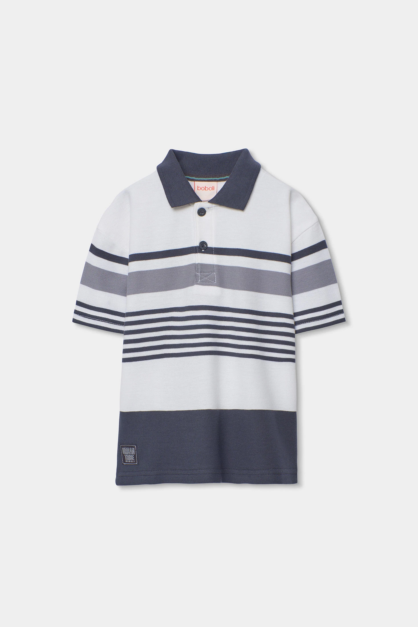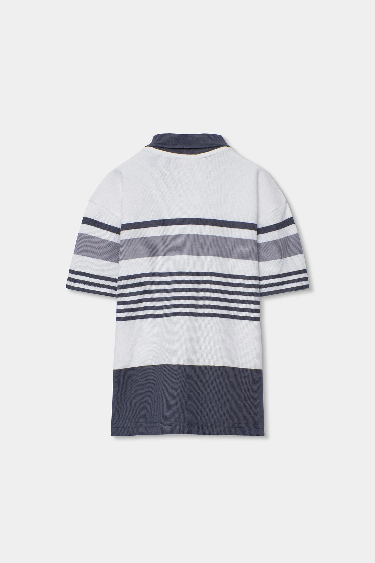 Baumwoll-Poloshirt für Jungen, ideal für jeden Anlass. Mit einem Design aus horizontalen Streifen in Blau-, Grau- und Weißtönen, vereint es Stil und Komfort. Der Baumwollstoff ist weich und leicht, perfekt für den täglichen Gebrauch. Es verfügt über einen klassischen Kragen und kurze Ärmel, die einen lässigen Touch verleihen. Erhältlich in Größen von 2 bis 14 Jahren, passt es sich verschiedenen Wachstumsphasen an. Dieses Poloshirt ist vielseitig und lässt sich leicht mit Hosen oder Shorts für einen frischen und modernen Look kombinieren.
