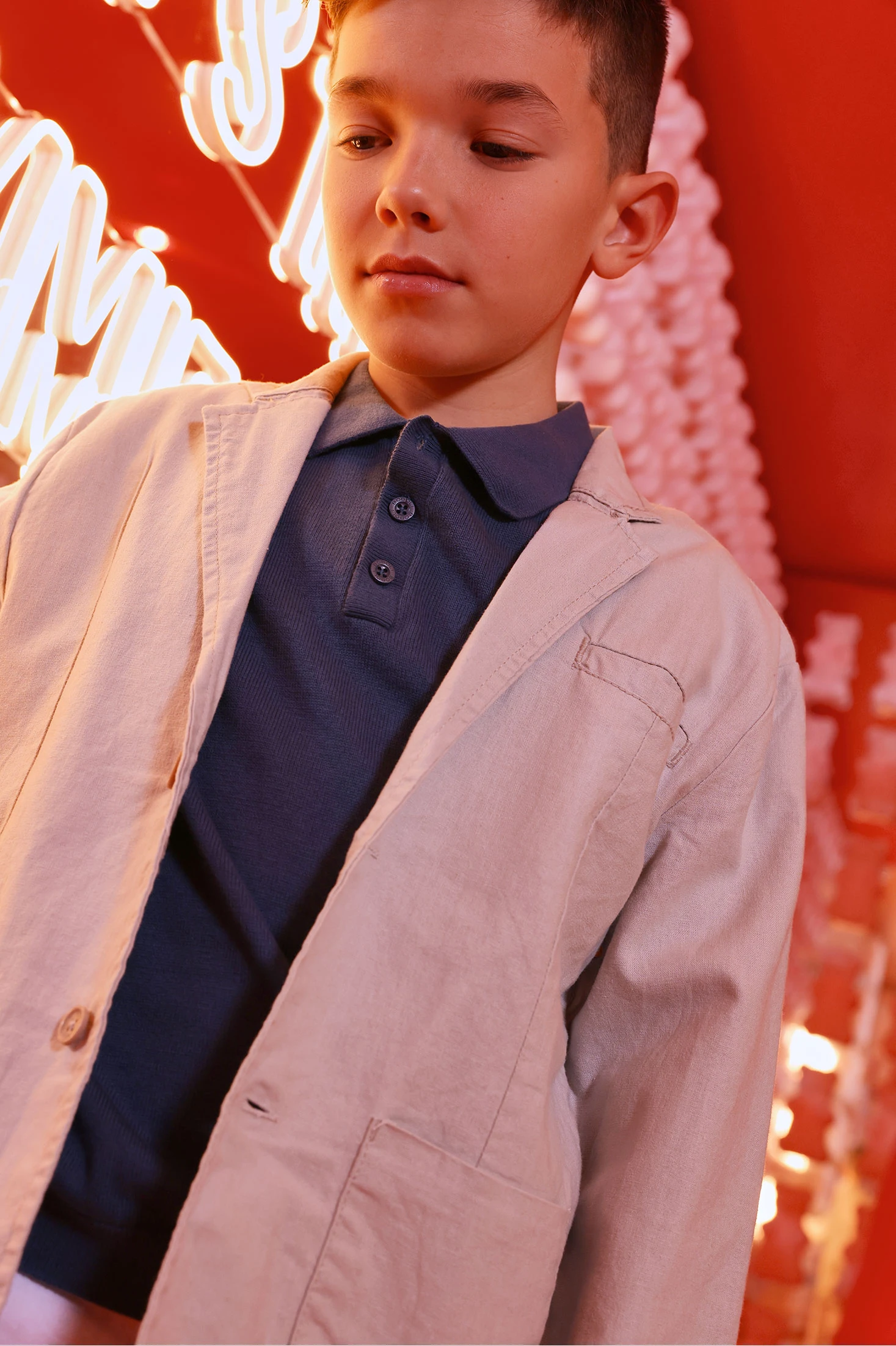 Leinenblazer für Jungen, perfekt für besondere Anlässe. Sein beiger Farbton bietet einen eleganten und vielseitigen Stil. Aus Leinen gefertigt, bietet er Komfort und Atmungsaktivität. Präsentiert ein klassisches Design mit Revers und Knöpfen vorne, ideal zur Kombination mit formeller oder lässiger Kleidung. Die Größen reichen von 12 Monaten bis 14 Jahren und bieten eine große Auswahl für verschiedene Altersgruppen. Ein unverzichtbares Basic im Kleiderschrank jedes Jungen, das jedem Outfit einen Hauch von Raffinesse verleiht.