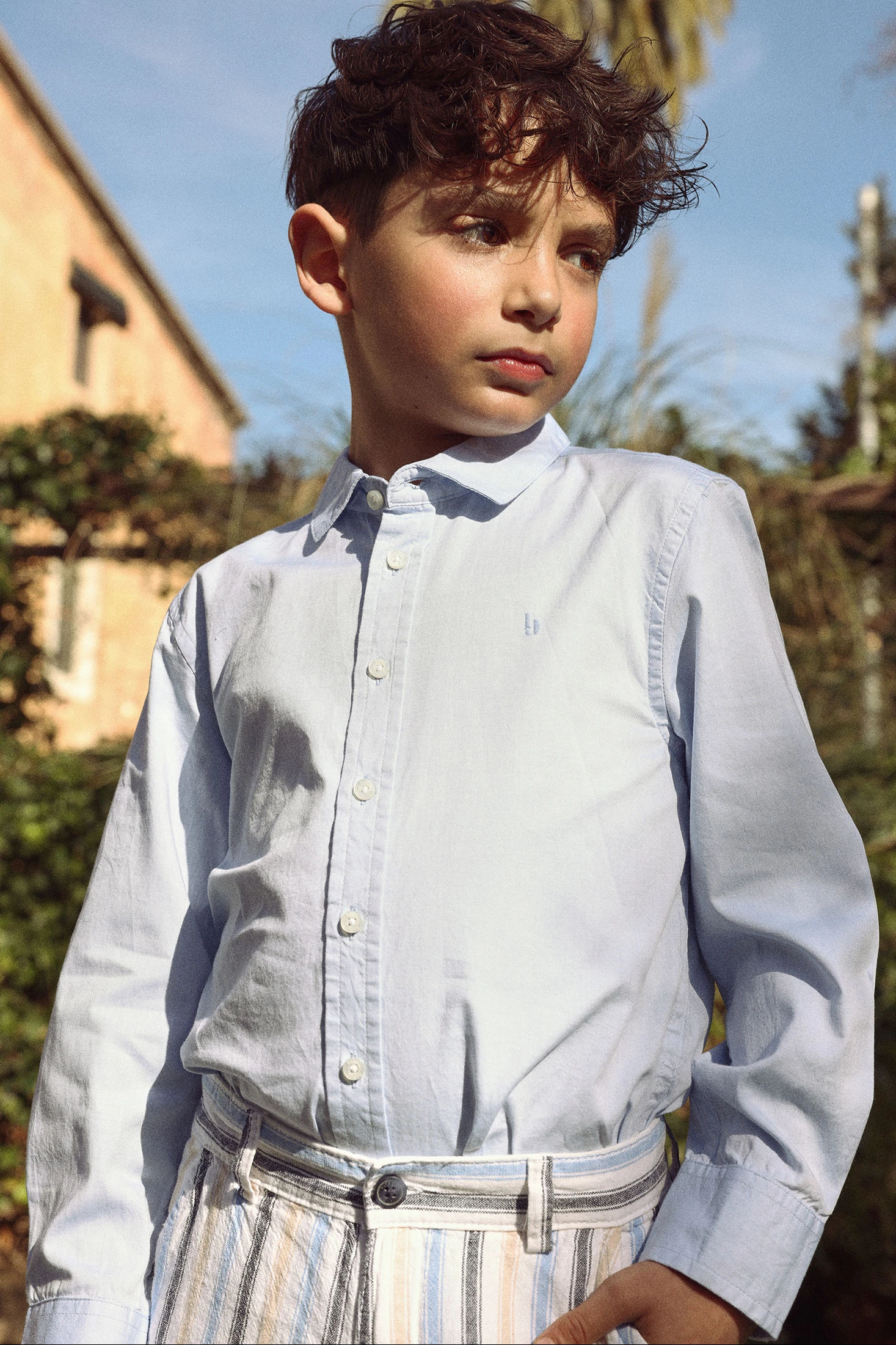 Oxford-Hemd für Jungen, klassisches Kleidungsstück in himmelblauer Farbe, aus Baumwolle gefertigt, die Komfort und Atmungsaktivität bietet, ideal für jede Gelegenheit. Es verfügt über einen klassischen Kragen und lange Ärmel, perfekt für einen eleganten und formalen Stil. Erhältlich in Größen von 12 Monaten bis 14 Jahren, vielseitig für verschiedene Altersgruppen. Sein schlichtes Design erleichtert die Kombination mit Hosen und sein feines Finish wertet jedes Outfit auf. Perfekt für besondere Anlässe oder einen eleganten Casual-Look.