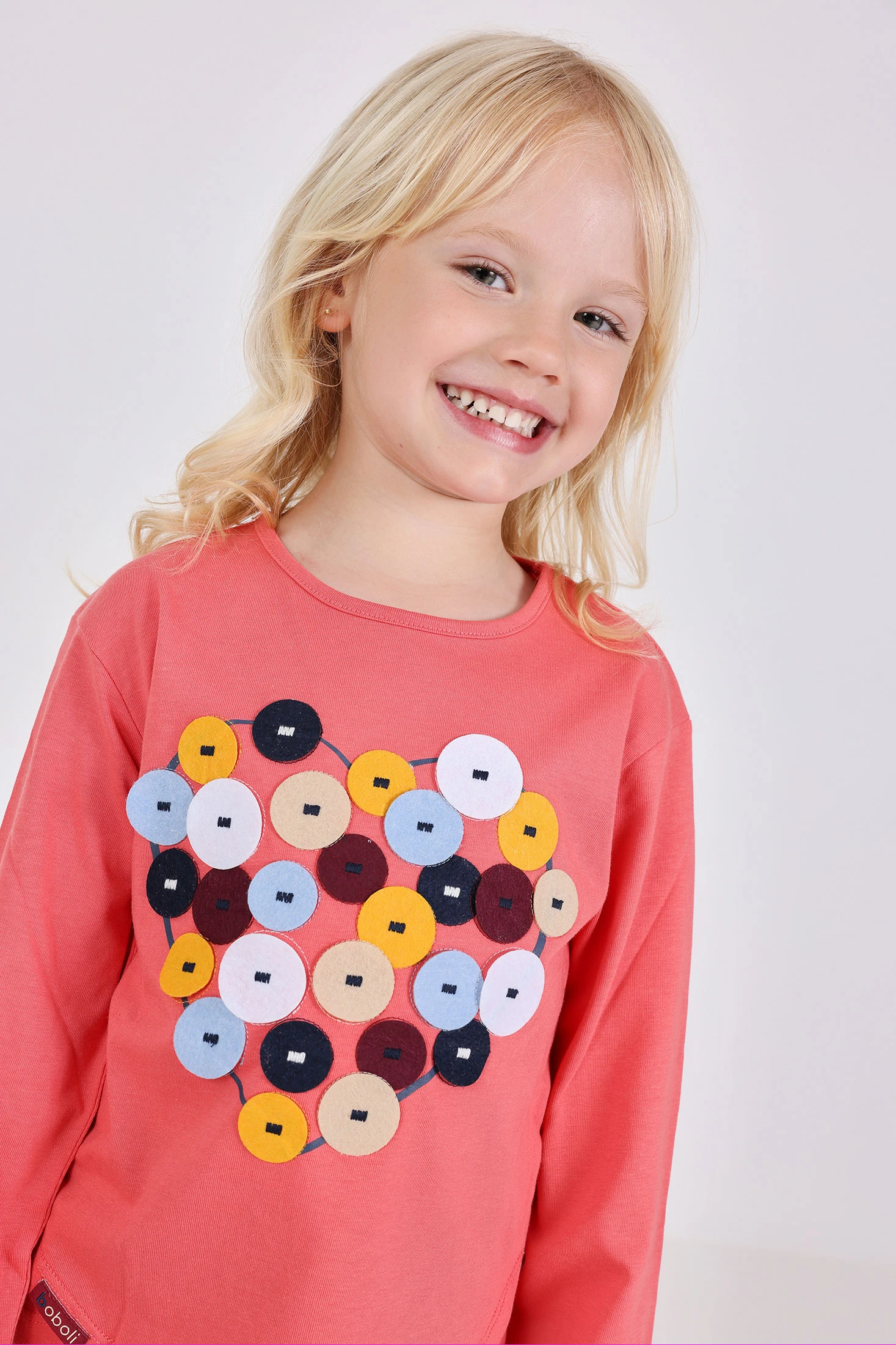 Rosa Baumwoll-T-Shirt mit Kreisdesign, ein bezauberndes Kleidungsstück für Mädchen, perfekt für die kühleren Jahreszeiten. Hergestellt aus einem weichen Stoff, der Komfort und Wärme bietet, ideal für den täglichen Gebrauch. Der runde Halsausschnitt ermöglicht vielseitige Kombinationen mit Hosen oder Röcken und bietet zahlreiche Stiloptionen. Erhältlich in Größen von 12 Monaten bis 10 Jahren, ist es eine attraktive Wahl, um Farbe und Stil in den Kleiderschrank Ihrer Tochter zu bringen.