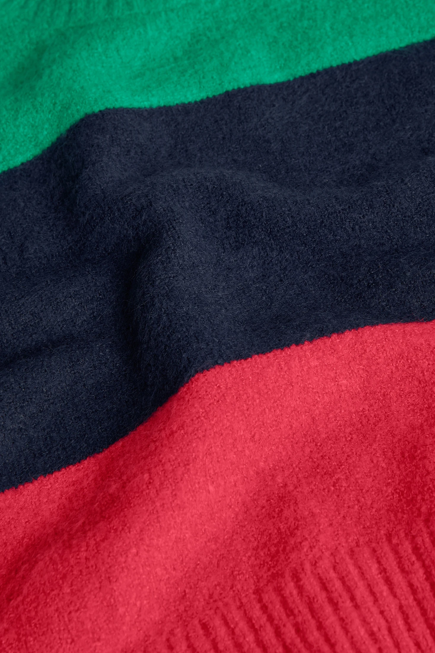 Gestrickter Pullover in mehreren Farben für Mädchen mit modernem Design aus Farbstreifen, ideal für die Herbst- und Wintersaison. Hergestellt aus weichem Strickmaterial, bietet er Wärme und Komfort an kalten Tagen. Der Rundhalsausschnitt und die langen Ärmel machen ihn vielseitig für jede Gelegenheit. Erhältlich in Größen von 2 bis 14 Jahren, lässt er sich leicht mit Hosen oder Röcken kombinieren und verleiht der Kinder-Garderobe einen eleganten und verspielten Touch.