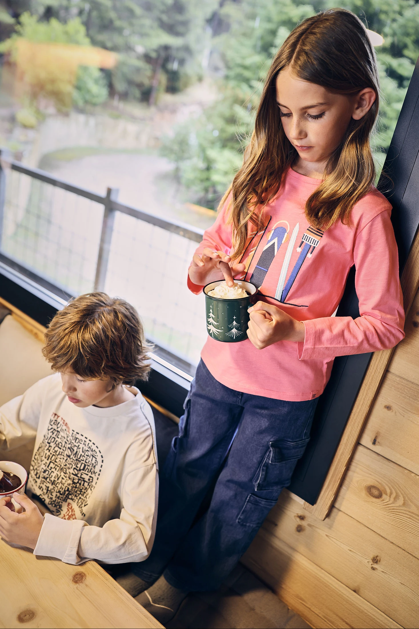 Lamé-T-Shirt aus rosafarbenem Strick für Mädchen, ideal für die Herbstsaison durch ihr frisches und leichtes Design. Hergestellt aus weicher Baumwolle, bietet sie an wärmeren Tagen Komfort und Atmungsaktivität. Verfügbar in Größen von 2 bis 14 Jahren, passt sie sich perfekt der Kindersilhouette an. Der Rosaton lässt sich leicht mit Röcken und Hosen kombinieren und schafft einen lässigen und modernen Stil. Perfekt für den Alltag, garantiert sie die nötige Bewegungsfreiheit, damit Mädchen ihre Aktivitäten in vollen Zügen genießen können.