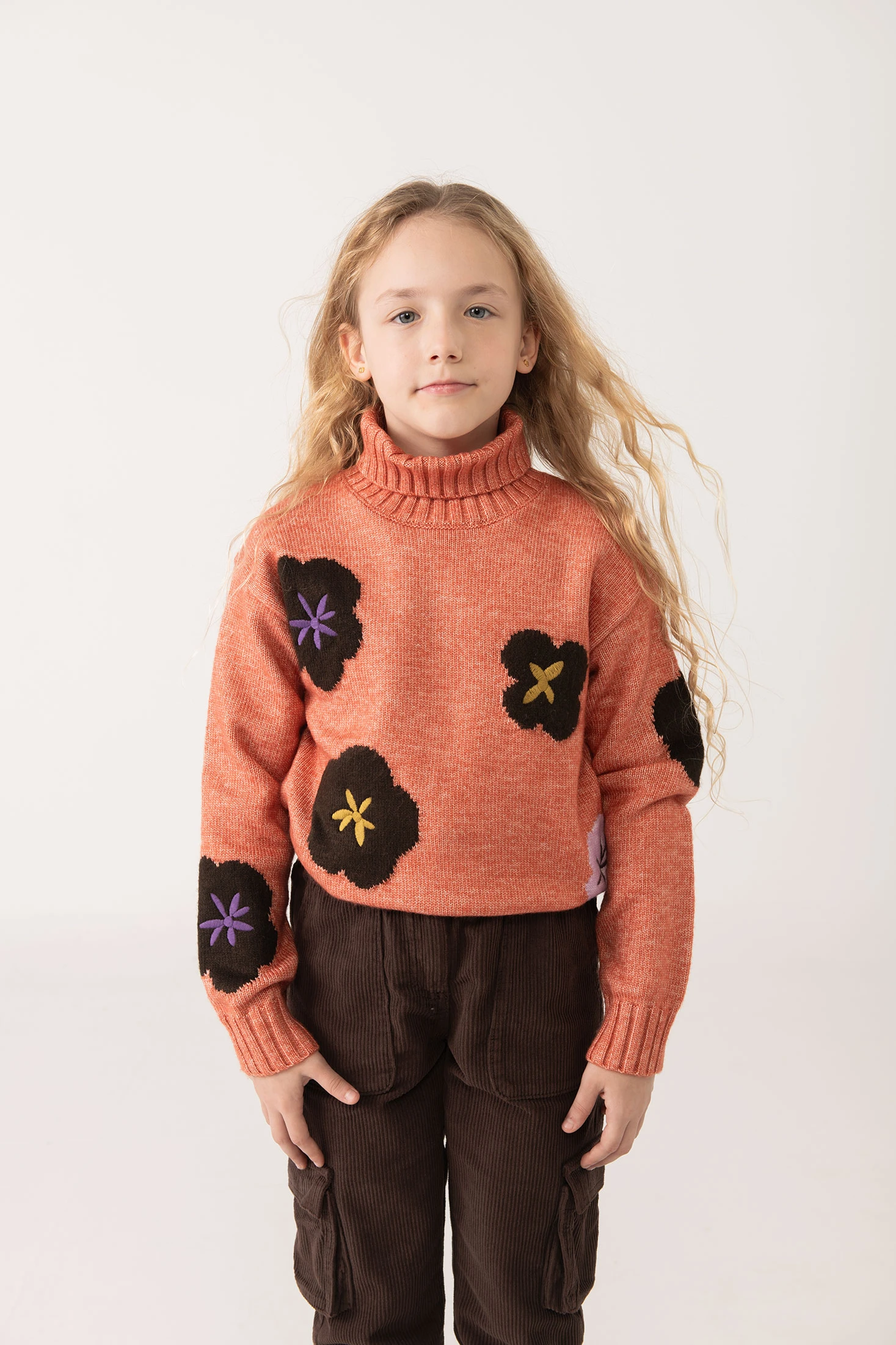 Strickpullover für Mädchen in Orange, entworfen, um Komfort und Wärme in den kälteren Jahreszeiten zu bieten. Hergestellt aus hochwertigen Materialien, ist er dank seiner Widerstandsfähigkeit und Atmungsaktivität ideal für Aktivitäten im Freien. Erhältlich in Größen von 2 bis 14 Jahren, passt er sich perfekt an den Körper jedes Mädchens an. Kombinieren Sie ihn mit Hosen oder Röcken, um einen eleganten und funktionalen Look zu erzielen. Sein vielseitiger Orangeton macht ihn zu einer idealen Ergänzung für die Wintergarderobe.