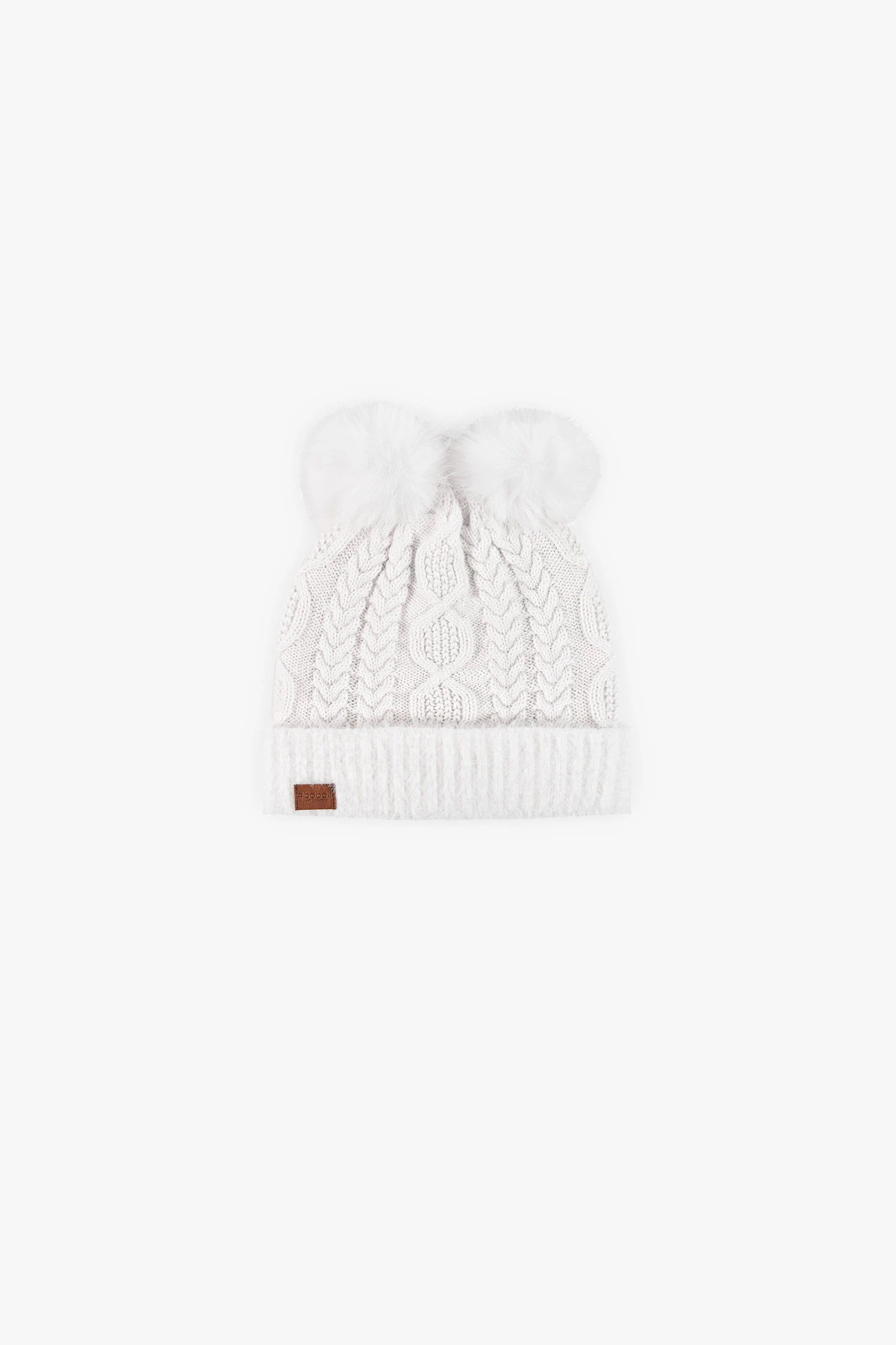 Mädchenmütze ideal für den Winter, aus Strickstoff gefertigt, der Wärme und Komfort bietet. In Weiß, mit klassischem Zopfmuster, das einen eleganten Touch verleiht. Perfekt zum Kombinieren mit Mänteln und Schals, schützt vor Kälte und ist eine stylische Option für den Alltag. Erhältlich in den Größen von M bis XXL. Ein unverzichtbares Accessoire, um die Kleinen in den kalten Monaten warm zu halten.