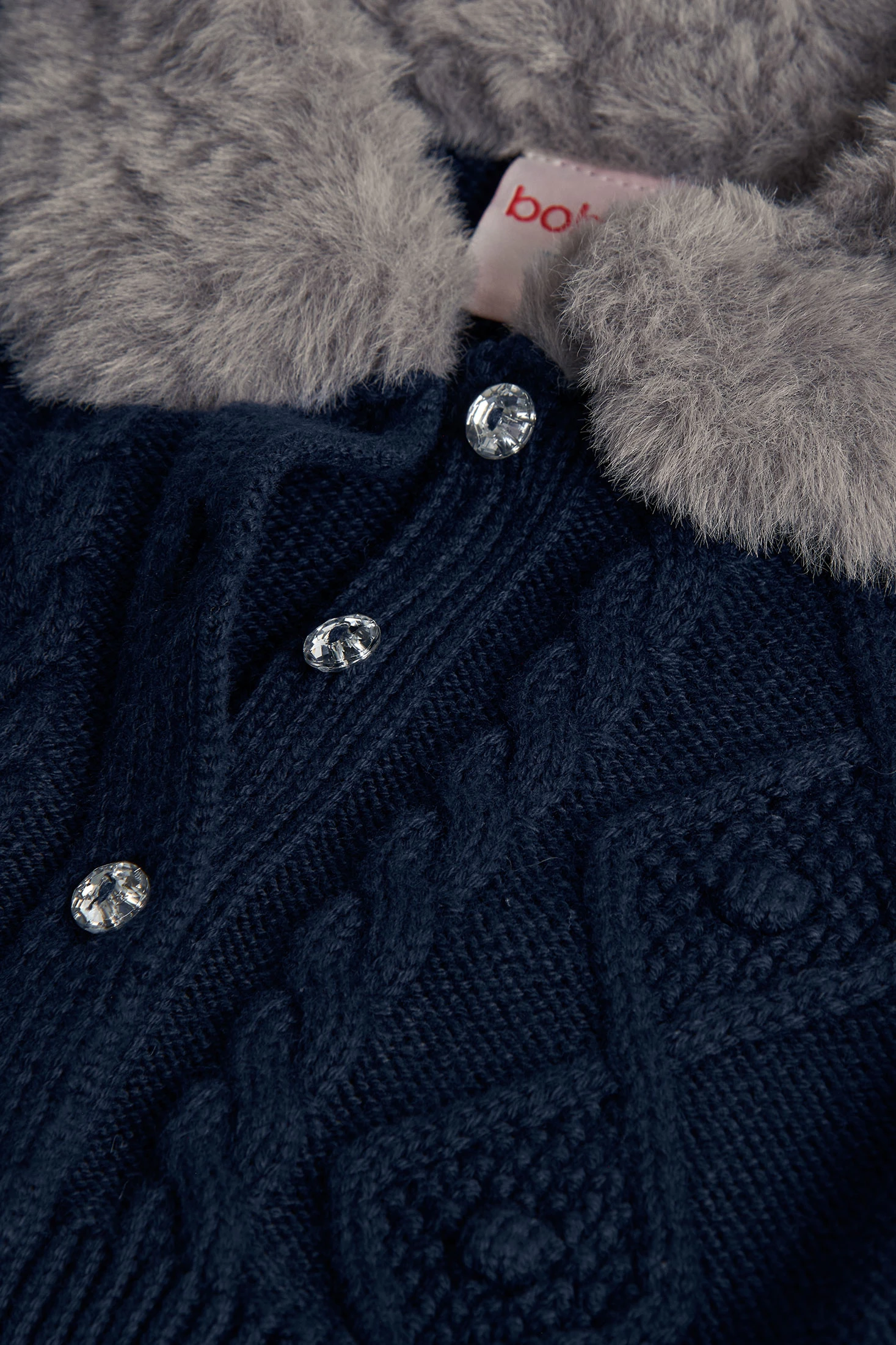 Marineblaue Strickjacke für Mädchen, ideal, um deine Kleine in den kalten Monaten bequem und warm zu halten. Hergestellt aus warmem und weichem Strickmaterial, bietet sie ein elegantes und zeitloses Design. Frontverschluss mit Knöpfen sorgt für eine einfache und zuverlässige Passform. Erhältlich in Größen von 12 Monaten bis 10 Jahren, passt sie perfekt zu Kleidern und Leggings für einen niedlichen Look. Perfekt sowohl für besondere Anlässe als auch für den täglichen Gebrauch im Winter.
