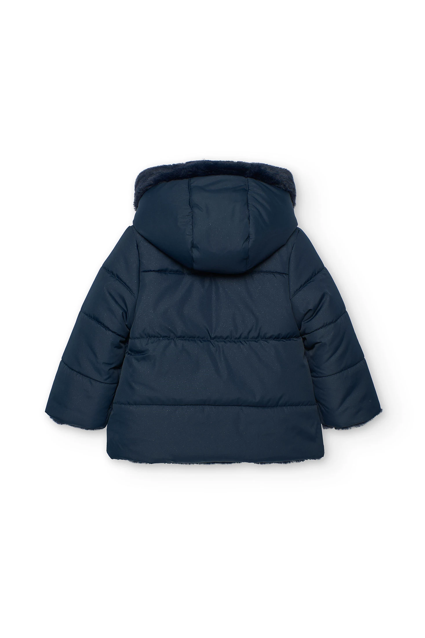 Reversible technische Parka in Marineblau für Mädchen, entworfen, um den Winter mit Eleganz und Funktionalität zu bewältigen. Hergestellt aus wasserabweisendem Material, bietet sie Schutz vor Kälte und Regen. Sie ist mit einem Frontreißverschluss und einer abnehmbaren Kapuze ausgestattet und sorgt bei jedem Tragen für Komfort und Wärme. Erhältlich in Größen von 12 Monaten bis 10 Jahren, ist sie eine vielseitige und praktische Option für verschiedene Anlässe. Perfekt, um sowohl mit lässigen als auch formellen Outfits kombiniert zu werden, garantiert sie Stil und Wärme an den kältesten Tagen des Jahres.