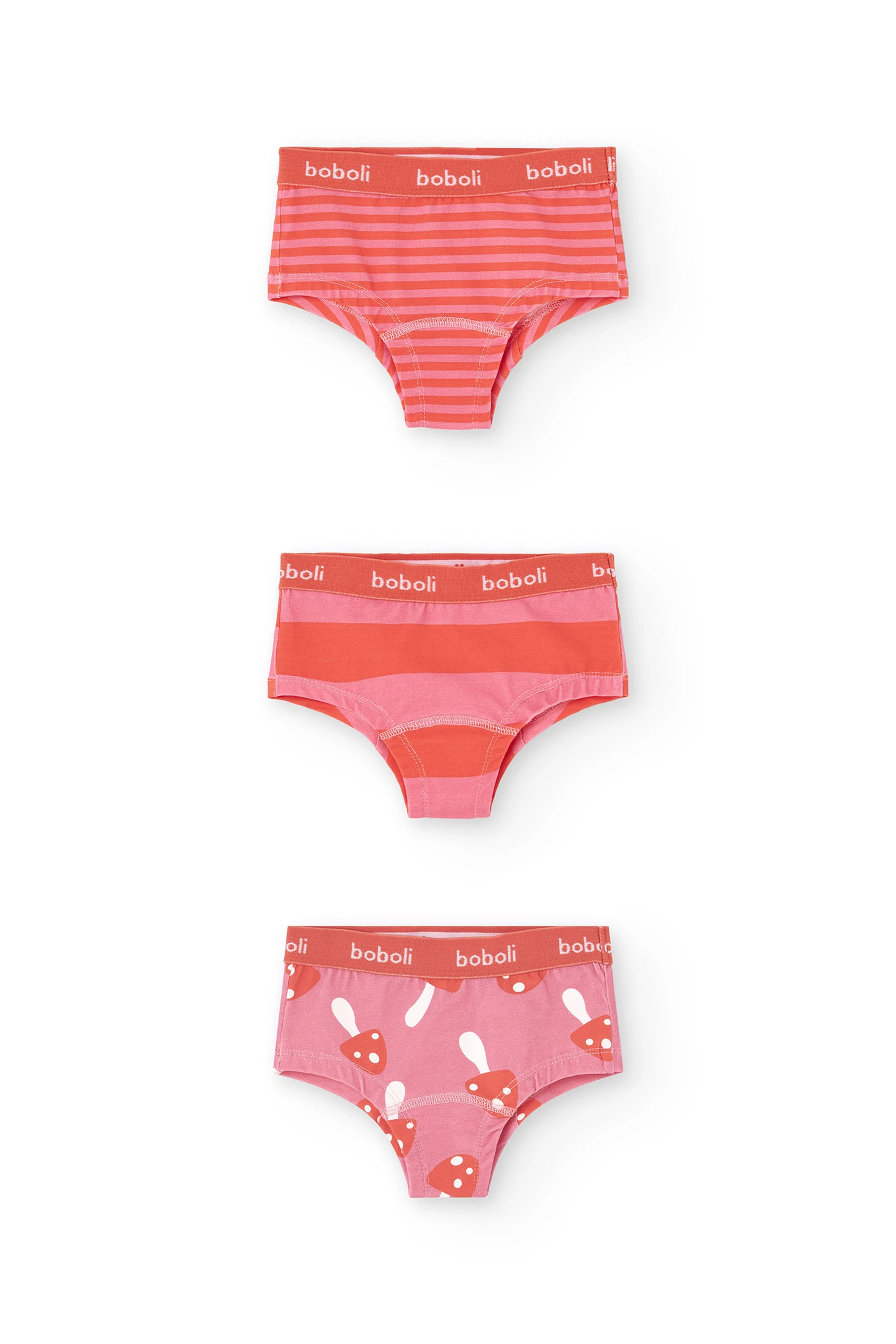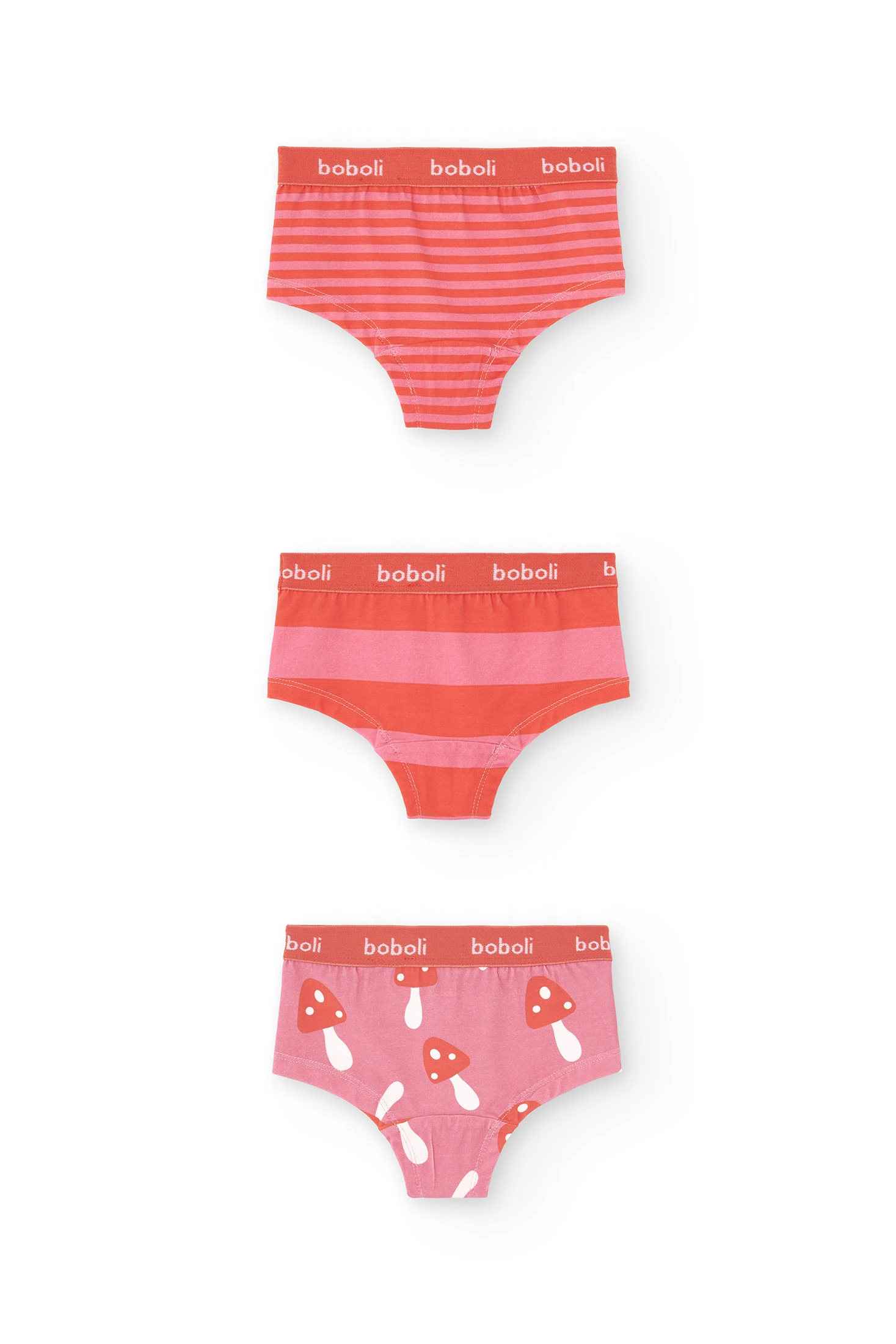 Mädchen-Slips im 3er-Pack in Rosa- und Rottönen mit Streifen- und Pilzmotiven, entworfen, um Spaß und Farbe in den Alltag zu bringen. Aus weicher und elastischer Baumwolle gefertigt, bieten sie den ganzen Tag über außergewöhnlichen Komfort. Erhältlich in den Größen 2 bis 14 Jahre, sorgen sie dank ihrer elastischen Bündchen mit Logos für eine perfekte Passform. Geeignet für jede Jahreszeit, sind sie ideal, um die Kleinen bei all ihren Aktivitäten bequem zu halten. Mit diesem Set wird die Schublade mit Unterwäsche Ihrer Tochter durch Stil und Lebendigkeit hervorstechen.