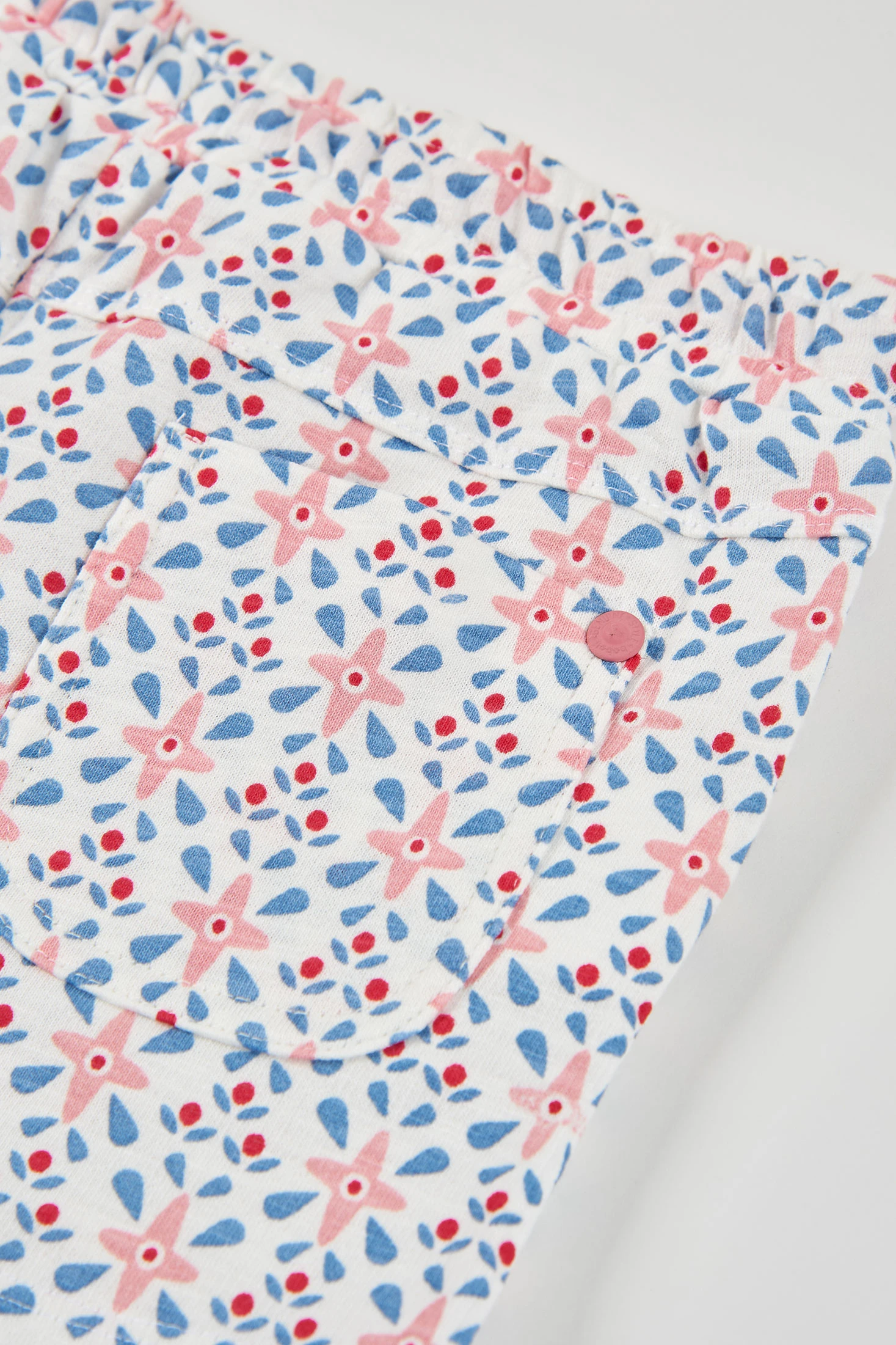 Bedruckte Frottee-Shorts, perfekt für die wärmeren Monate. Das Design zeigt einen fröhlichen Blumenprint in Pastelltönen auf weißem Hintergrund. Gefertigt aus weichem Frotteestoff, garantiert es Komfort und Bewegungsfreiheit. Der verstellbare Taillenbund mit rosa Schleife sorgt für einen sicheren Sitz. Erhältlich in Größen von 12 Monaten bis 10 Jahren. Ideal in Kombination mit einfarbigen T-Shirts für einen sommerlichen und frischen Look.
