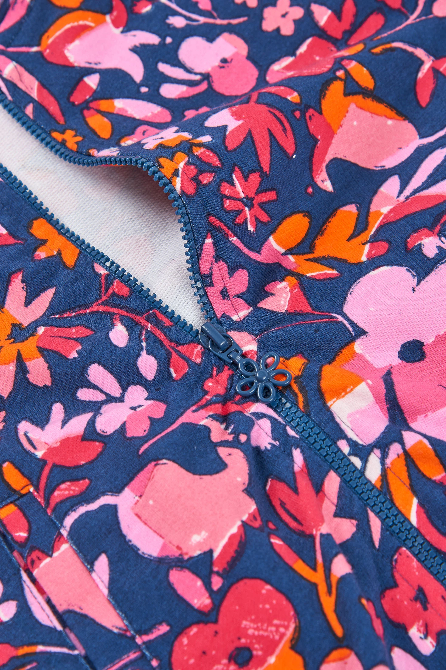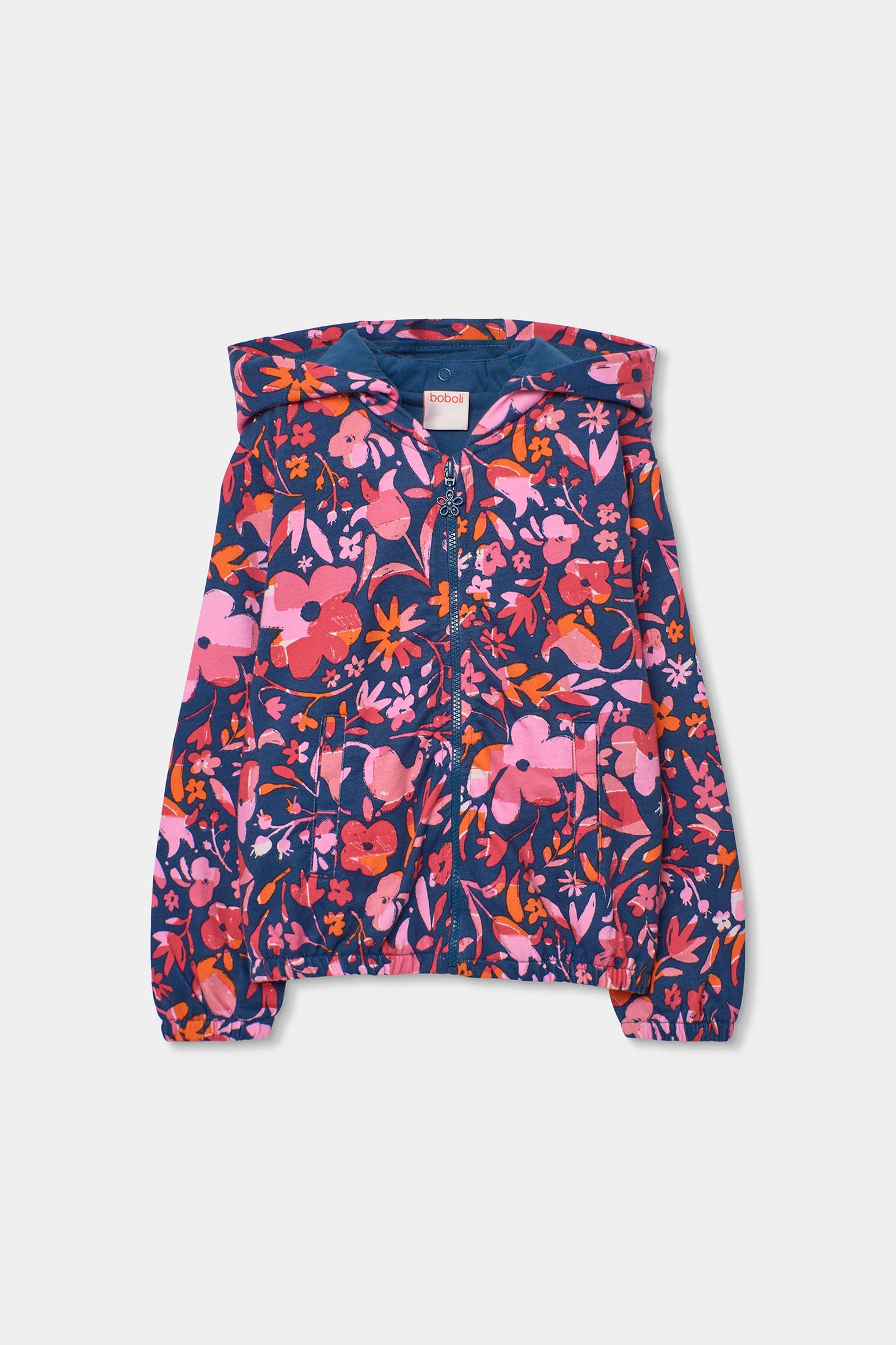 Bedruckte Kapuzenjacke aus Plüsch für Mädchen, ideal, um Stil und Komfort in kühleren Monaten zu bieten. Mit einem lebhaften Blumenmuster in Rosa- und Orangetönen, das auf einem blauen Hintergrund hervorsticht. Das Plüschmaterial sorgt für Wärme und Weichheit. Enthält eine praktische Kapuze und einen Reißverschluss zum einfachen Anpassen. Die Größen sind von 12 Monaten bis 14 Jahren erhältlich. Perfekt zur Kombination mit Jeans oder Leggings, verleiht diese Jacke der Kinder-Garderobe eine fröhliche und farbenfrohe Note.
